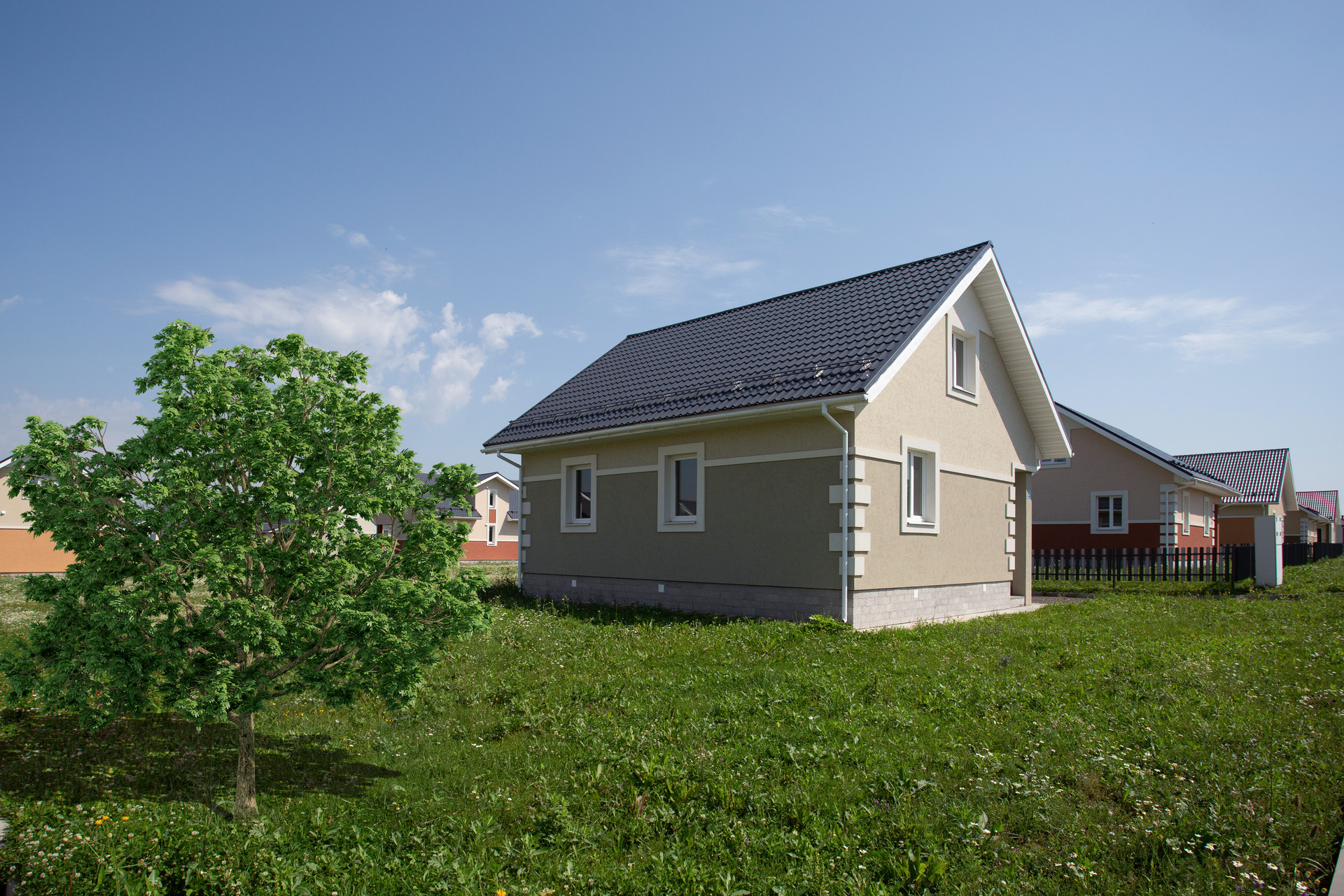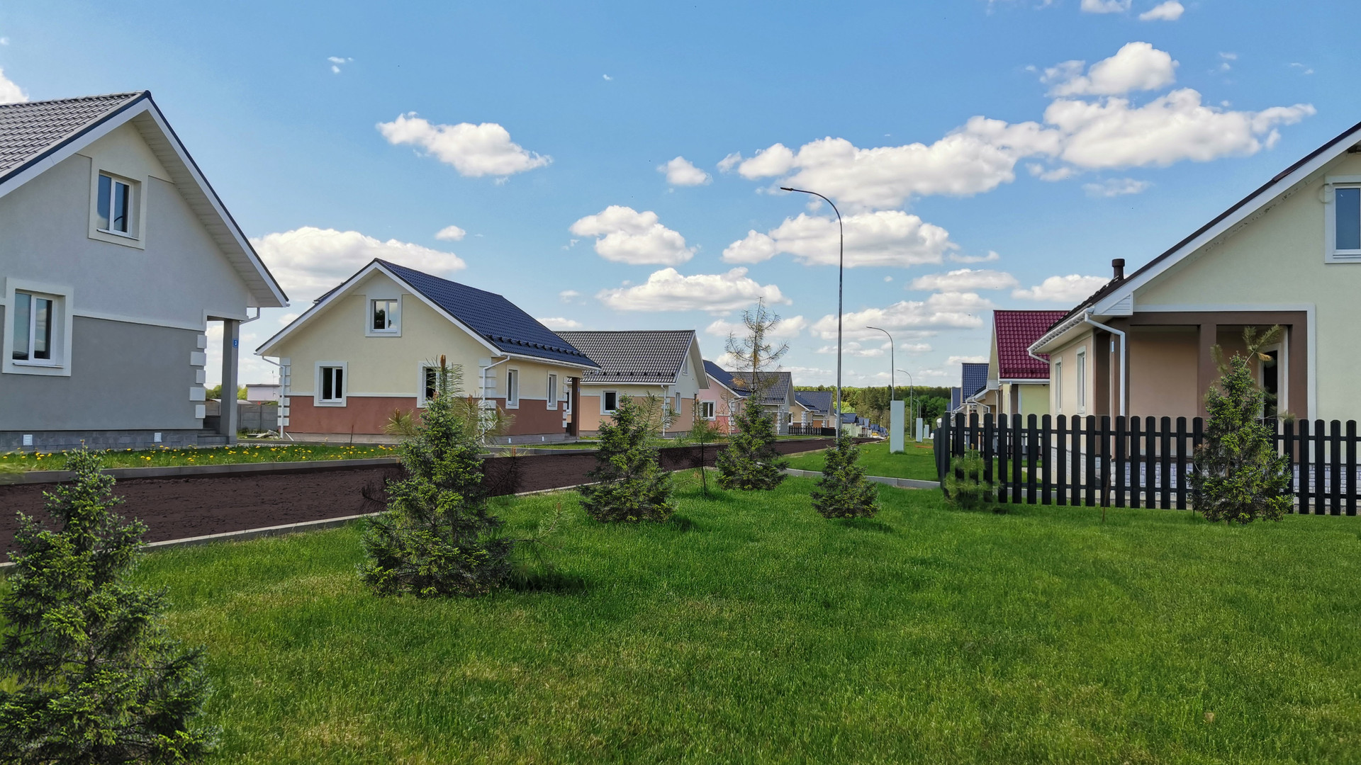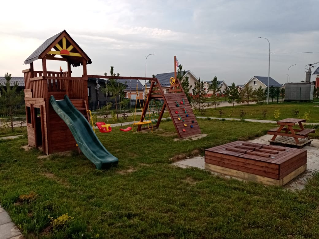 Для удобства проживания сделаны широкие асфальтированные дороги, детские площадки, освещение на улицах, выход в лес и к реке. Автобусная остановка возле КПП, магазин в паре минутах, школа и садик в 8 минутах от поселка.