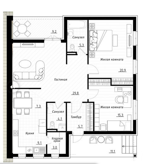 Общая площадь 100.5 м2
