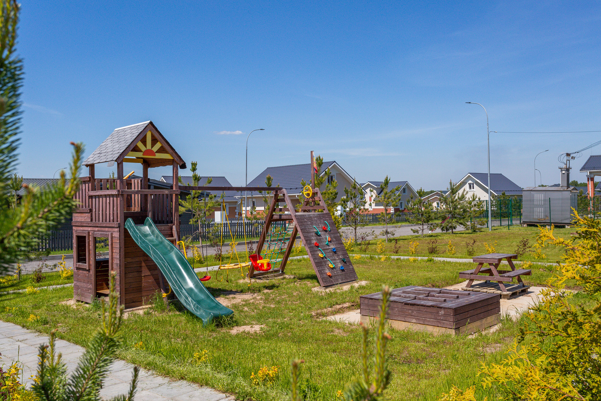 Дом находится в закрытом поселке, круглосуточная охрана, детскийе площадки на территории, прогулочные зоны, выход к реке и в лес. До школы и садика 8 минут, до жд станции 10 минут, автобусная остановка в 50 метрах.