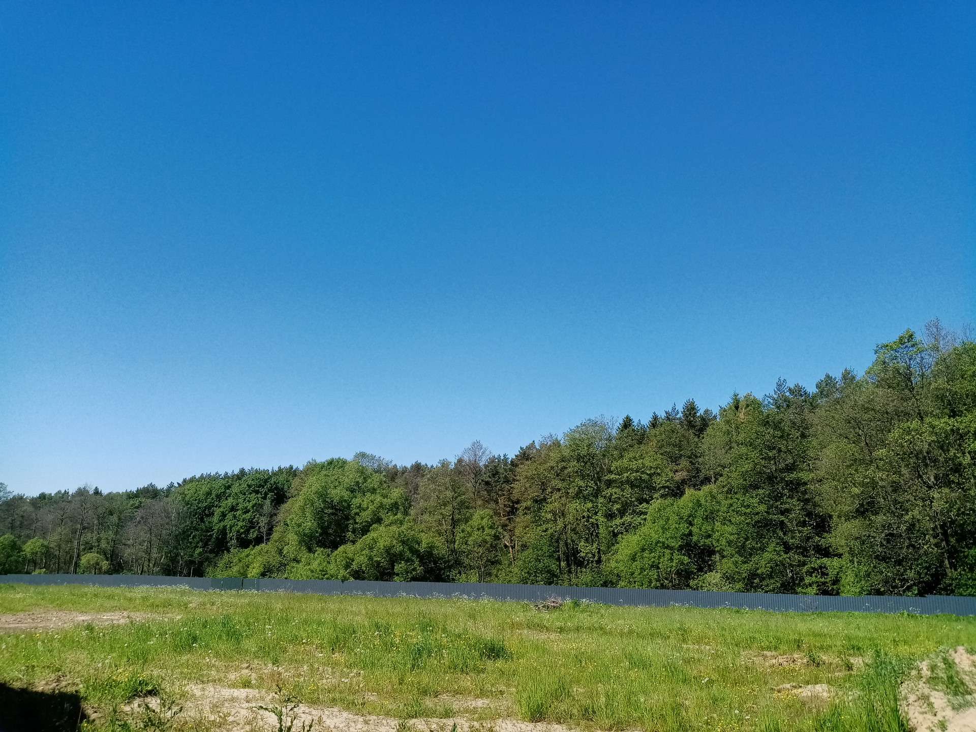 Участок 7.6 сотки, ровный, огорожен забором из металлического штакетника.