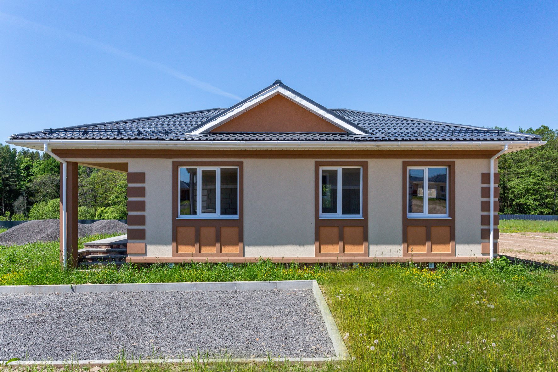 Перед домом место под газон и парковка на 2 авто.