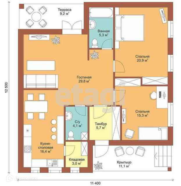 Общая площадь 121.7 м2
