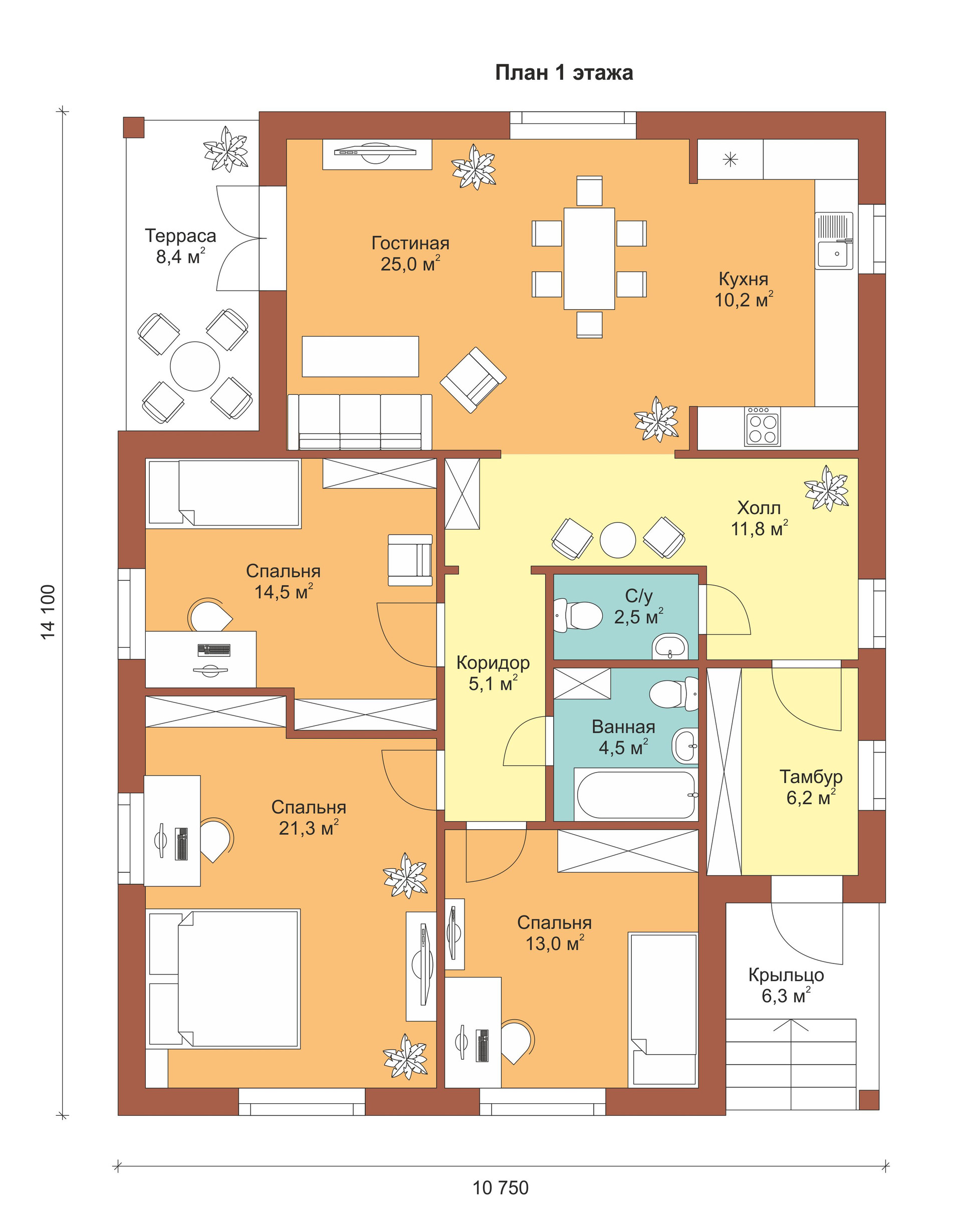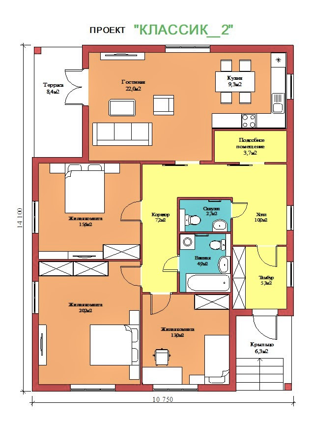 Площадь дома: 128,8 м²