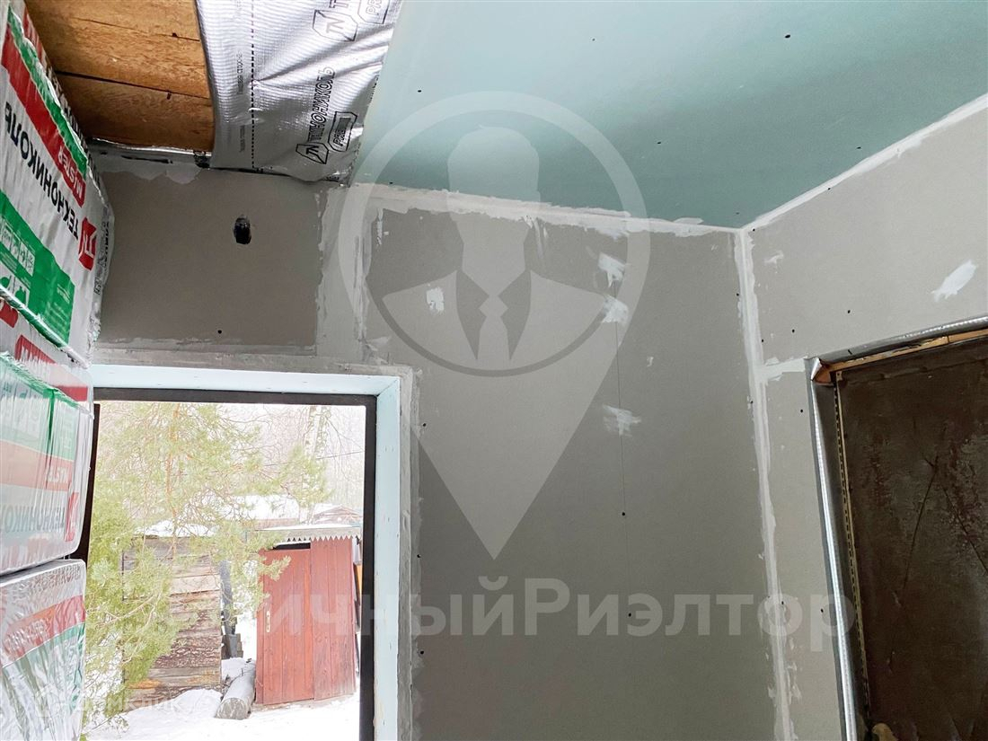Так же произведено утепление дома по всему периметру - утеплен пол, стены пристройки, выделена зона под совмещенный санузел. В данный момент проводится утепление межэтажного перекрытия, обработка перекрытий второго этажа, утепление стен, так же в дальнейшем второй этаж зашивается гипсокартоном и шпаклюется.
