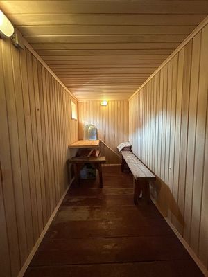 - Баня русская (лиственница, обработана) рядом с домом: на дровах, душ, комната отдыха.