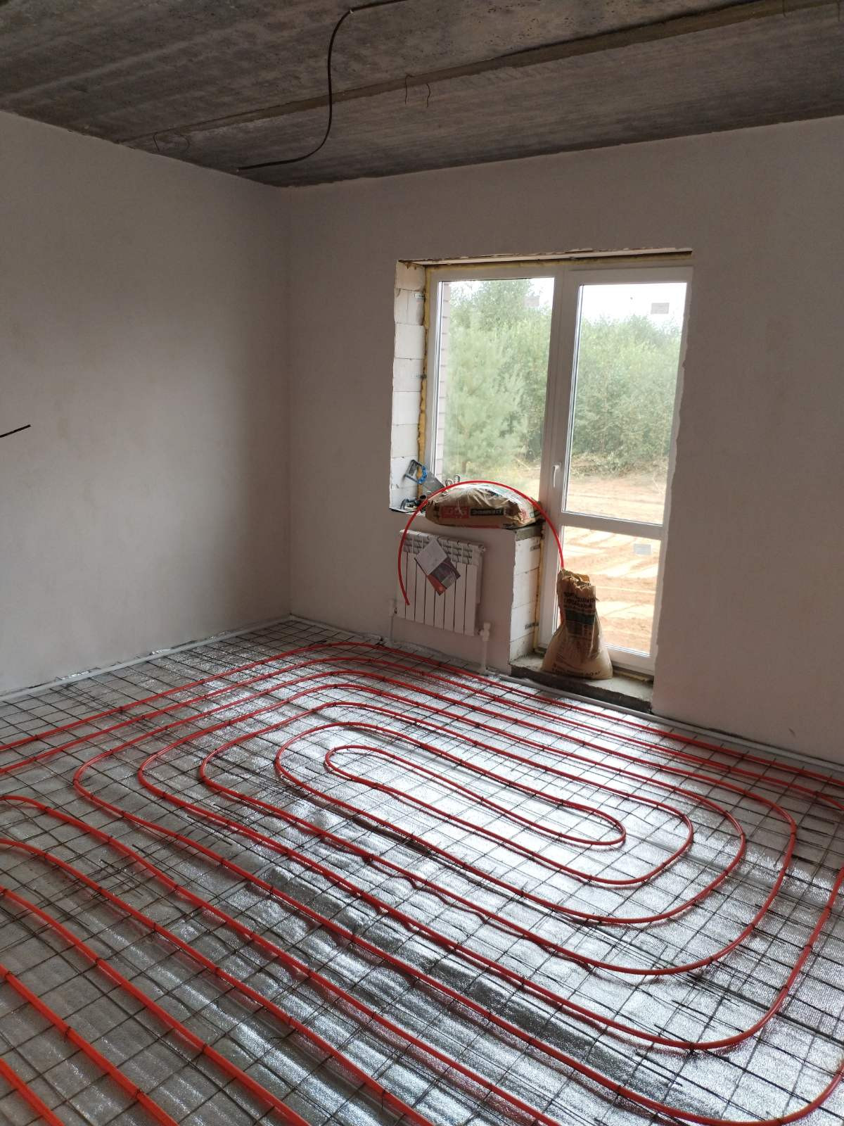 Внутри дома сделаны все разводки инженерных коммуникаций : электропроводка, отопление (включая теплый пол на первом этаже), вода (возможно подключение к центральному водопроводу), газ, свет, септик. Стены оштукатурены под поклейку обоев, цементно-песчаная стяжка полов.