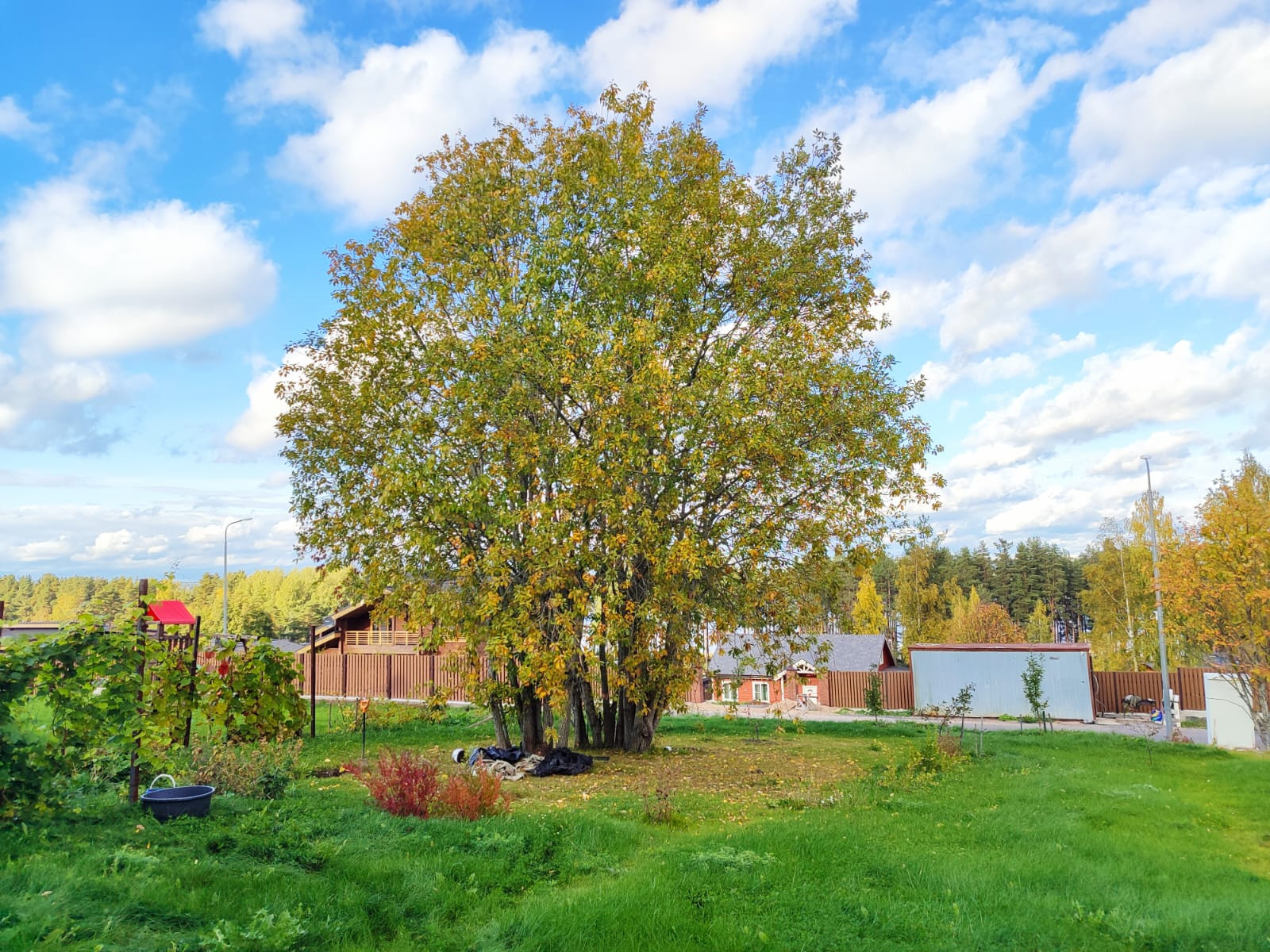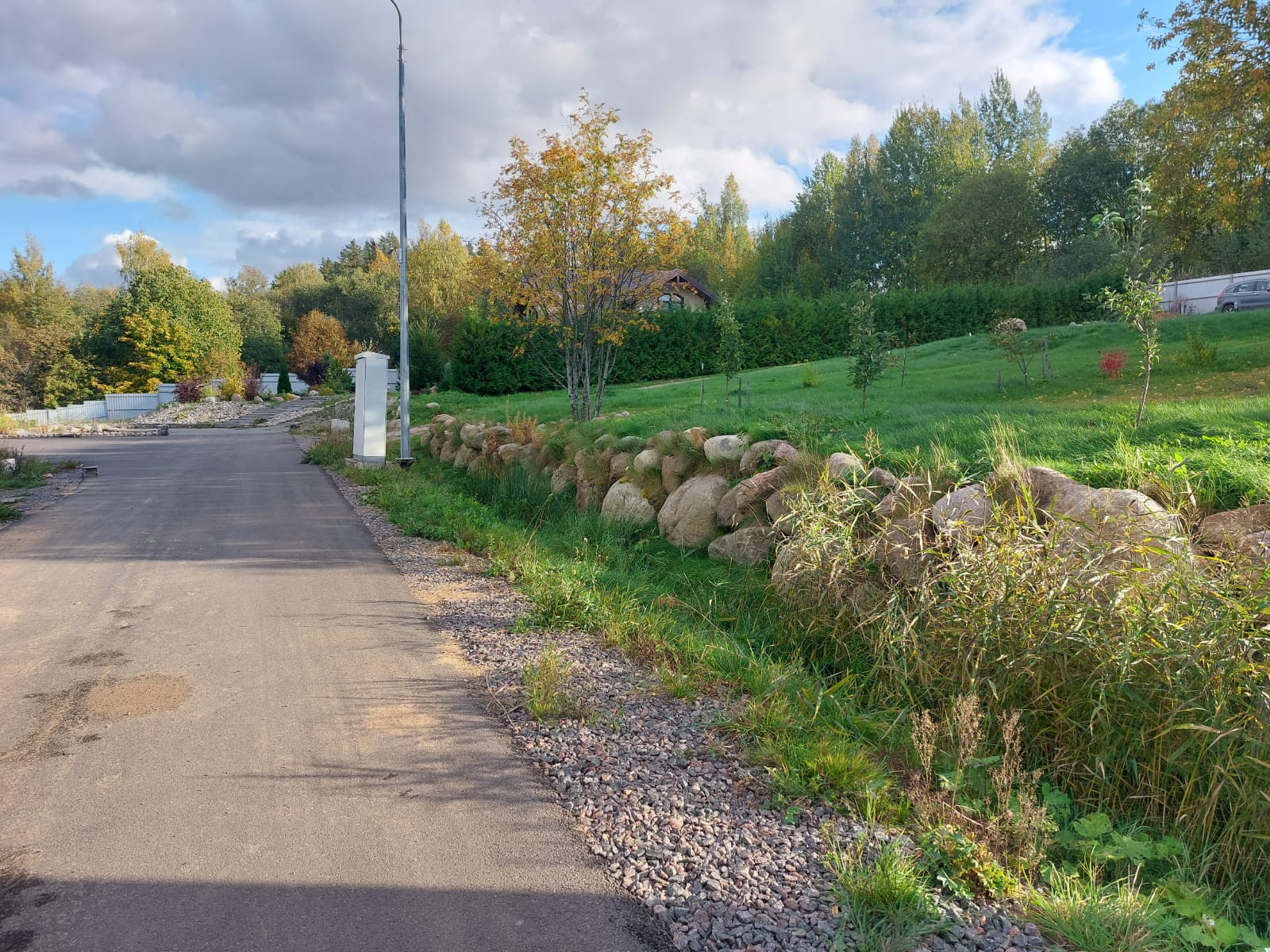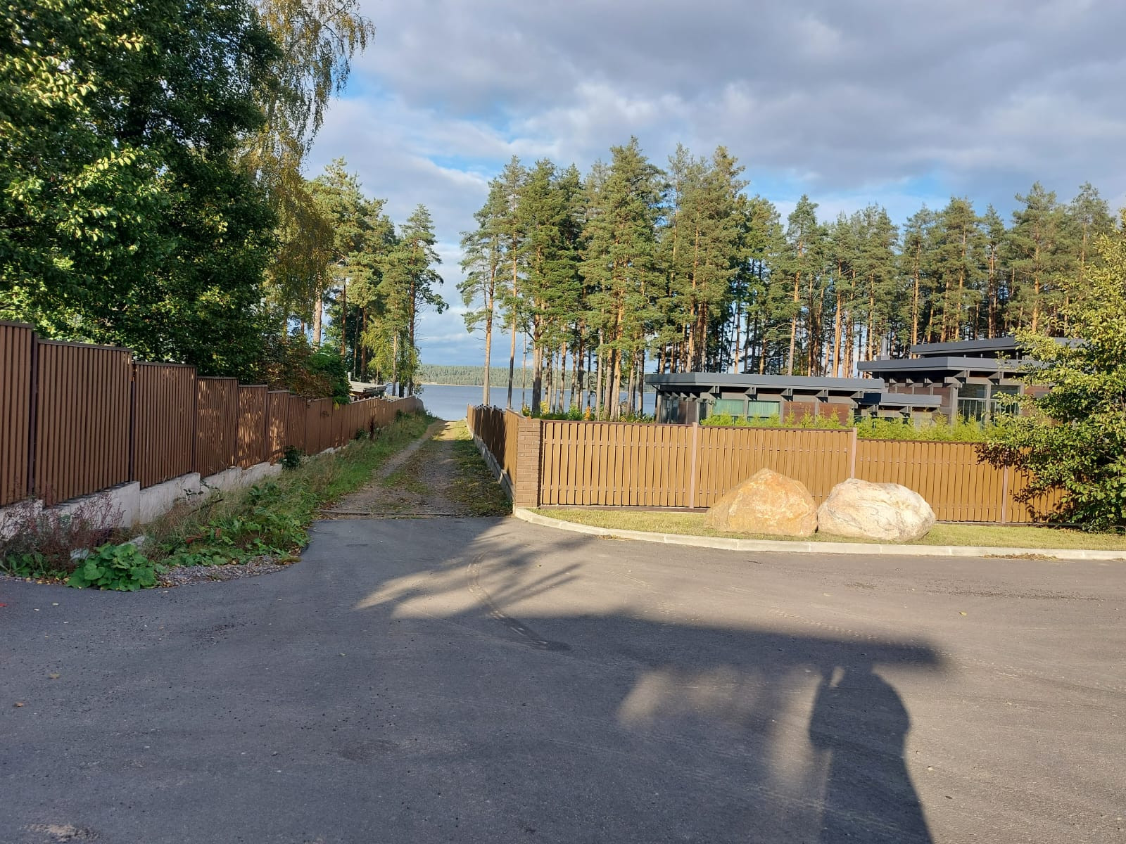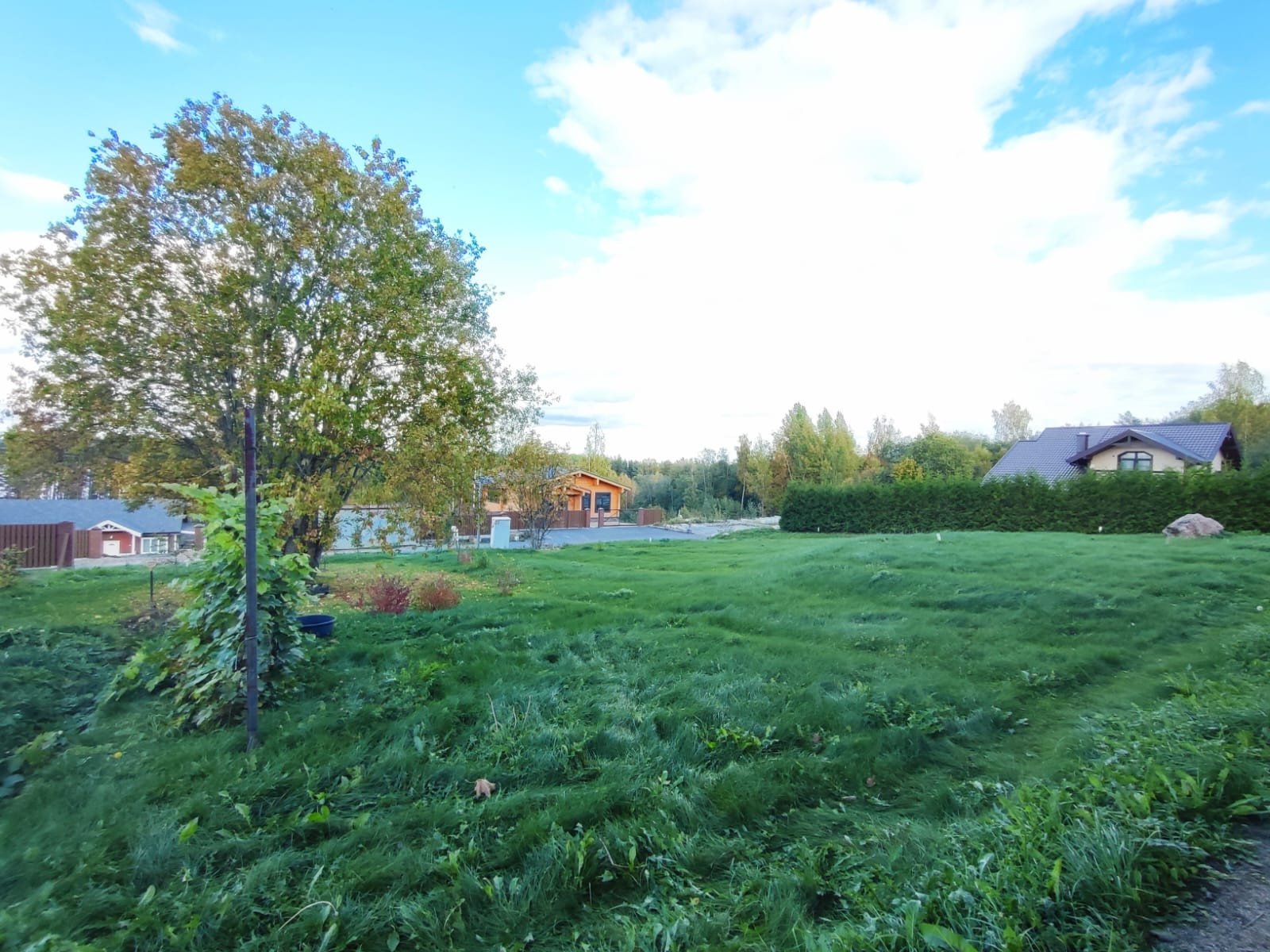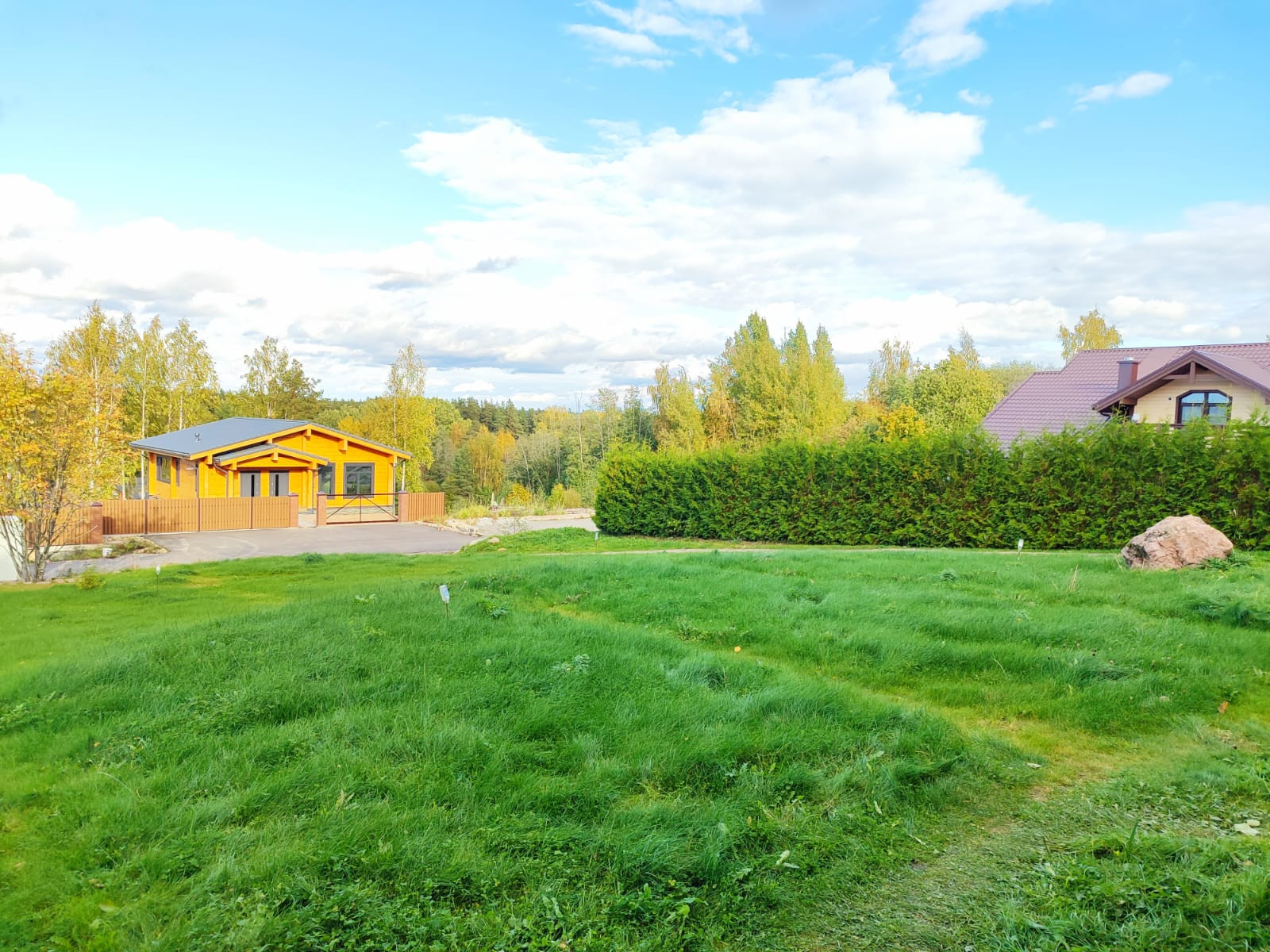 Участок правильной прямоугольной формы, разработан,ухожен. Со стороны леса  огорожен  высоким забором, с другой стороны живописный забор из высоких туй надежно закрывает вид на соседний участок. Одну сторону участка украшает забор из разных сортов винограда. Подъезд к участку отличный в течении всего года, освещение и видеонаблюдение, въезд через охранный пункт.