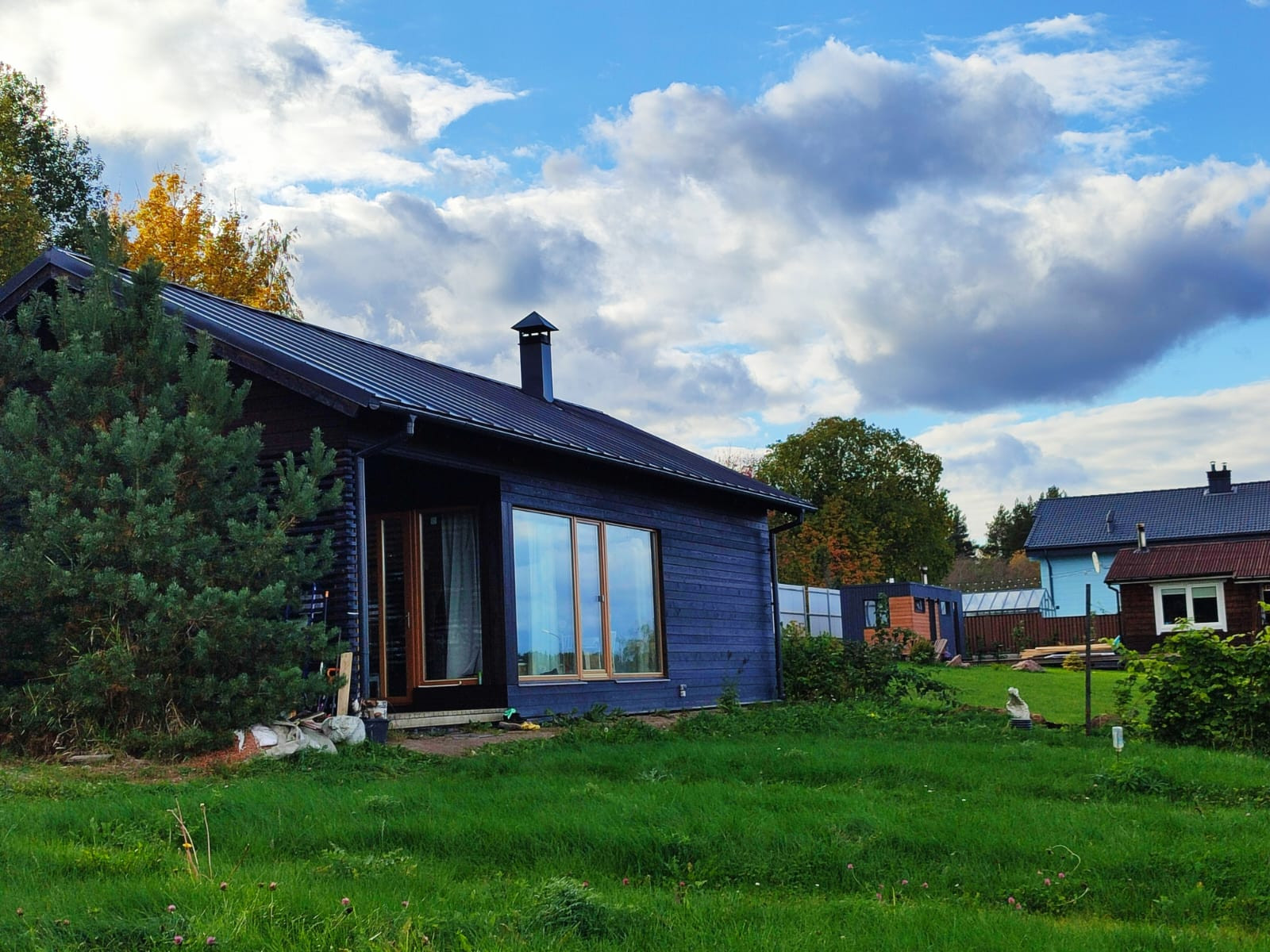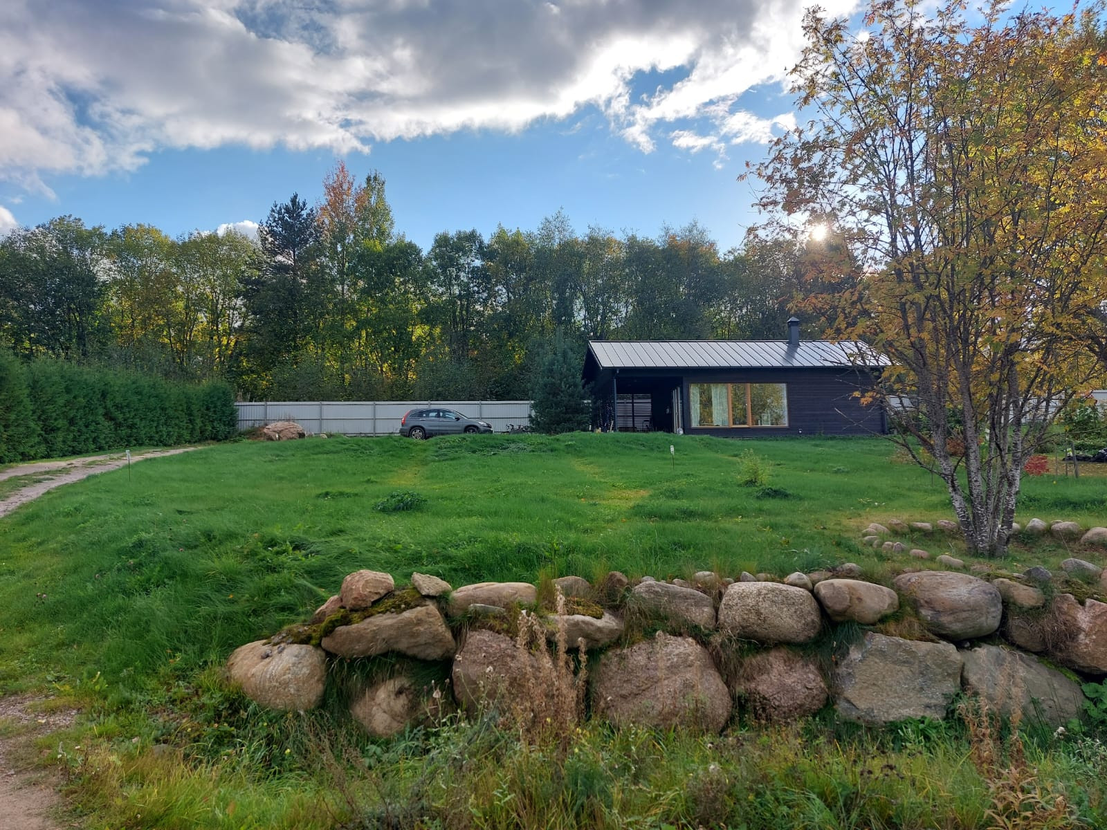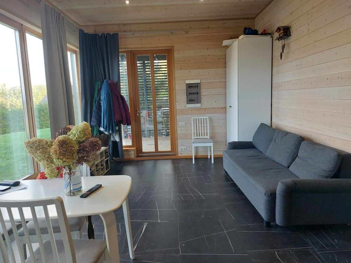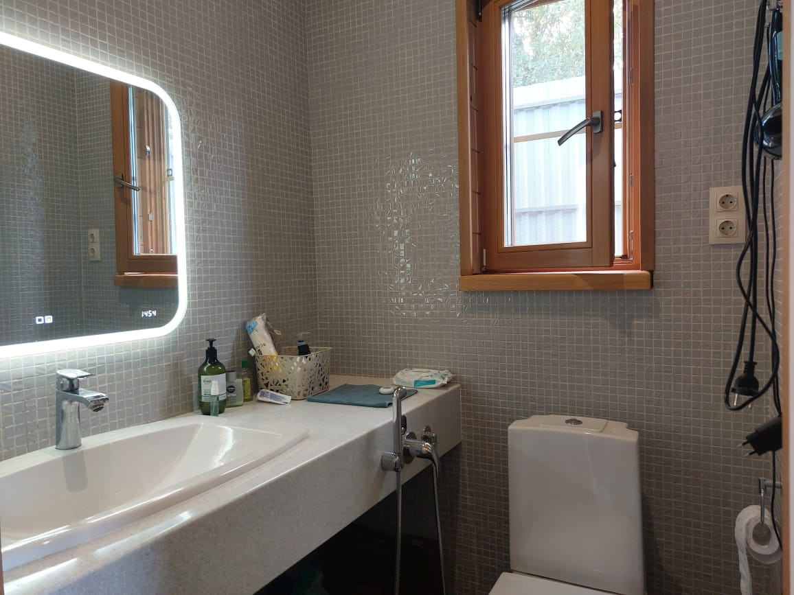 Предлагаю вашему вниманию интересный вариант загородного дома в живописном уголке Карельского перешейка (элитный небольшой поселок). Дом небольшой, но продуманный, в нем поместились и просторная шикарная баня, и санузел, и душевая, небольшая спальня, а самое главное-уютная солнечная  кухня гостиная с окнами в пол и живописным видом.