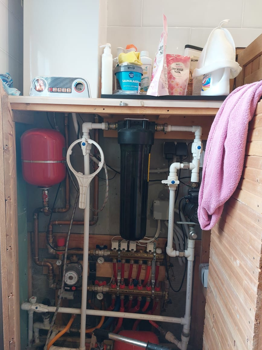 Дом оснащен всеми коммуникациями для комфортного проживания-электричество (15 кВт), водопровод (своя скважина с питьевой водой), канализация (септик). Обогревается  дом теплыми полами, а также камином, который одновременно отапливает баню.
