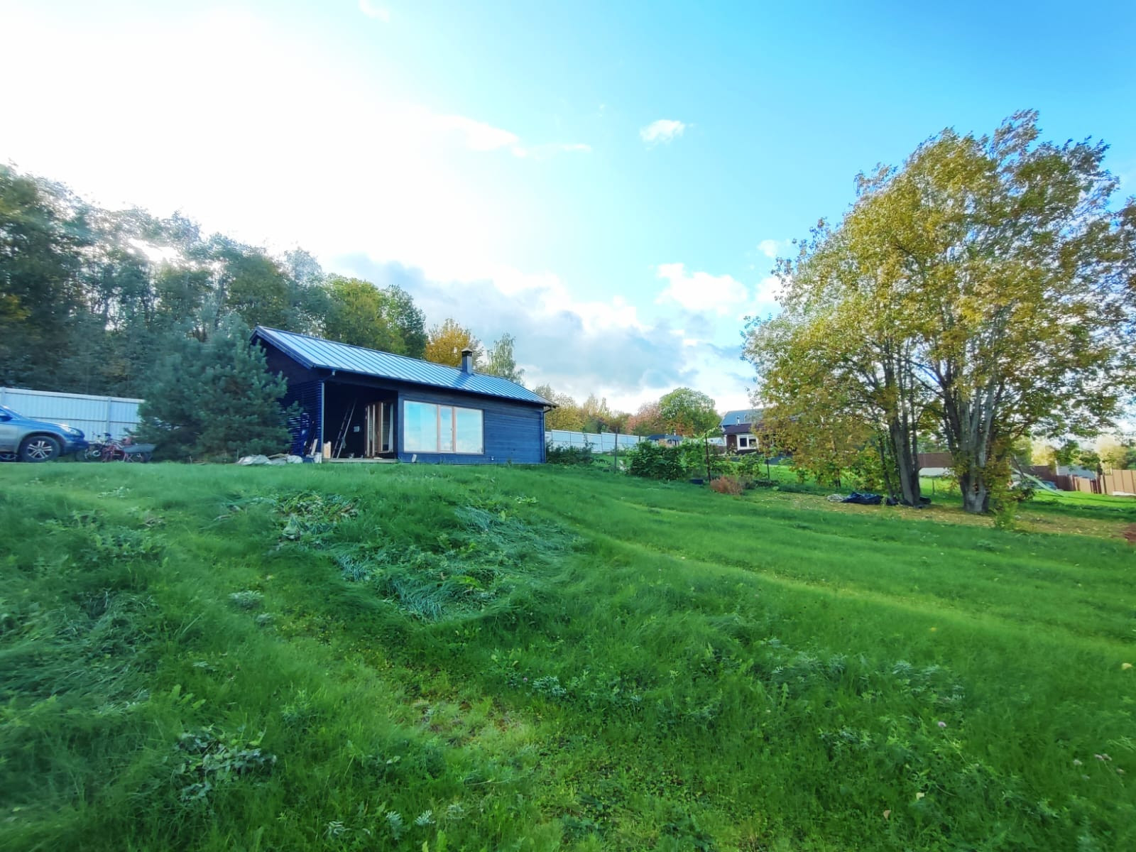 Дом построен на основательном фундаменте (плита), по каркасной технологии. Высота потолков более 3 метров, установлены шикарные окна в пол и входные двери (деревянные ст.пакеты). 2 входа в дом. Огромная терраса для отдыха с видом на Суходолькое озеро. Есть хорошая перспектива увеличения площади дома за счет террасы.