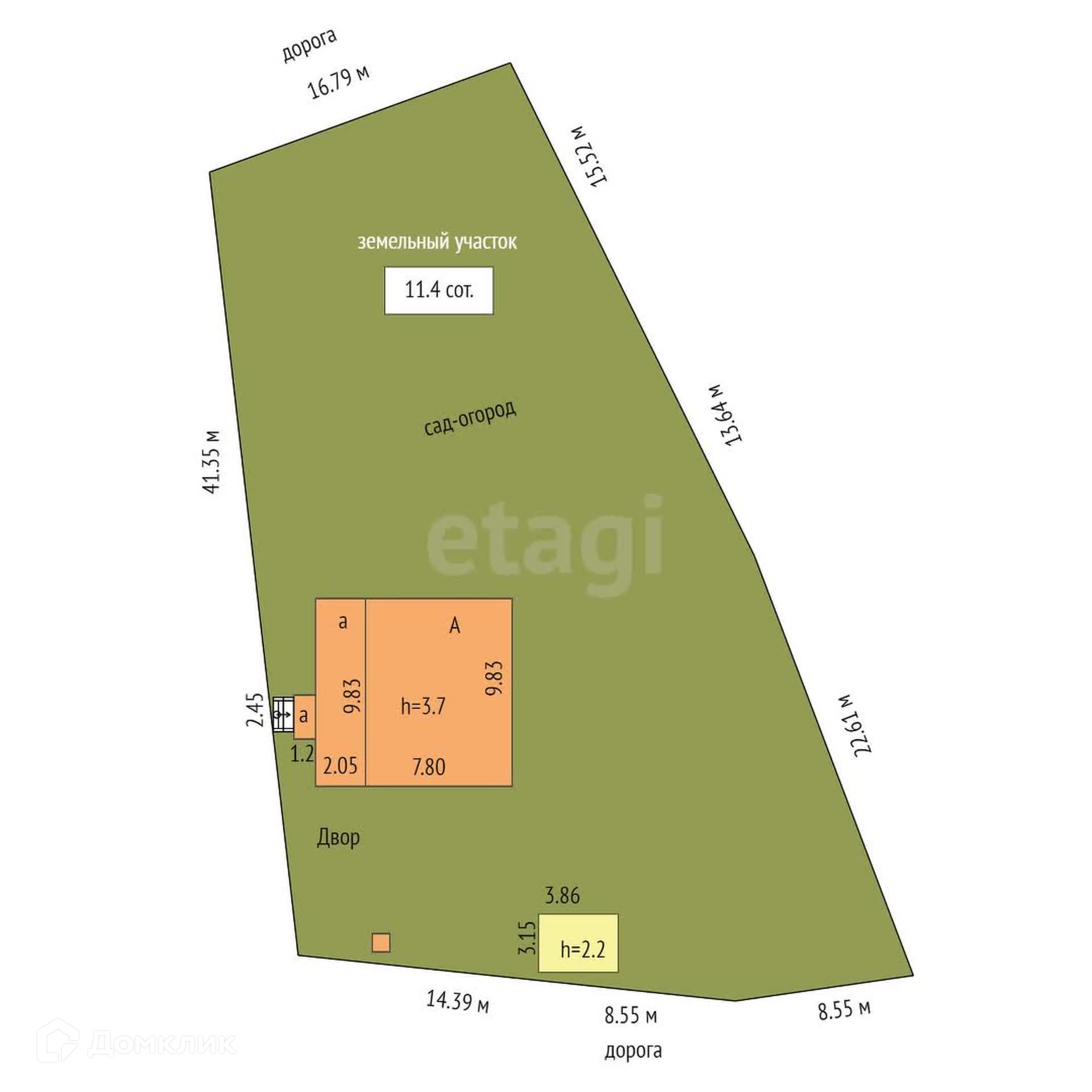 Площадь участка 11.4 сот.