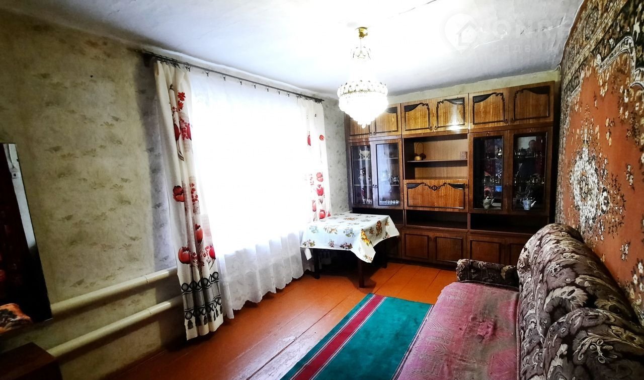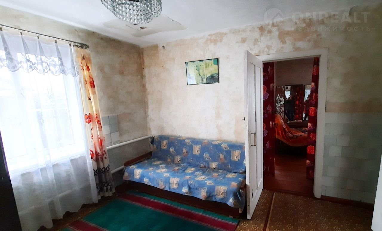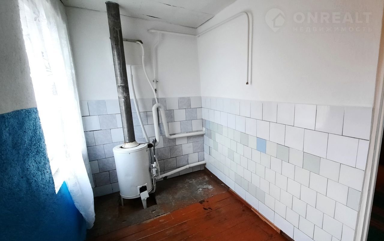 Стены кирпичные оштукатуренные, крыша – шифер. Центральный газ и центральный водопровод в доме, отопление  газовое. Туалет на улице.