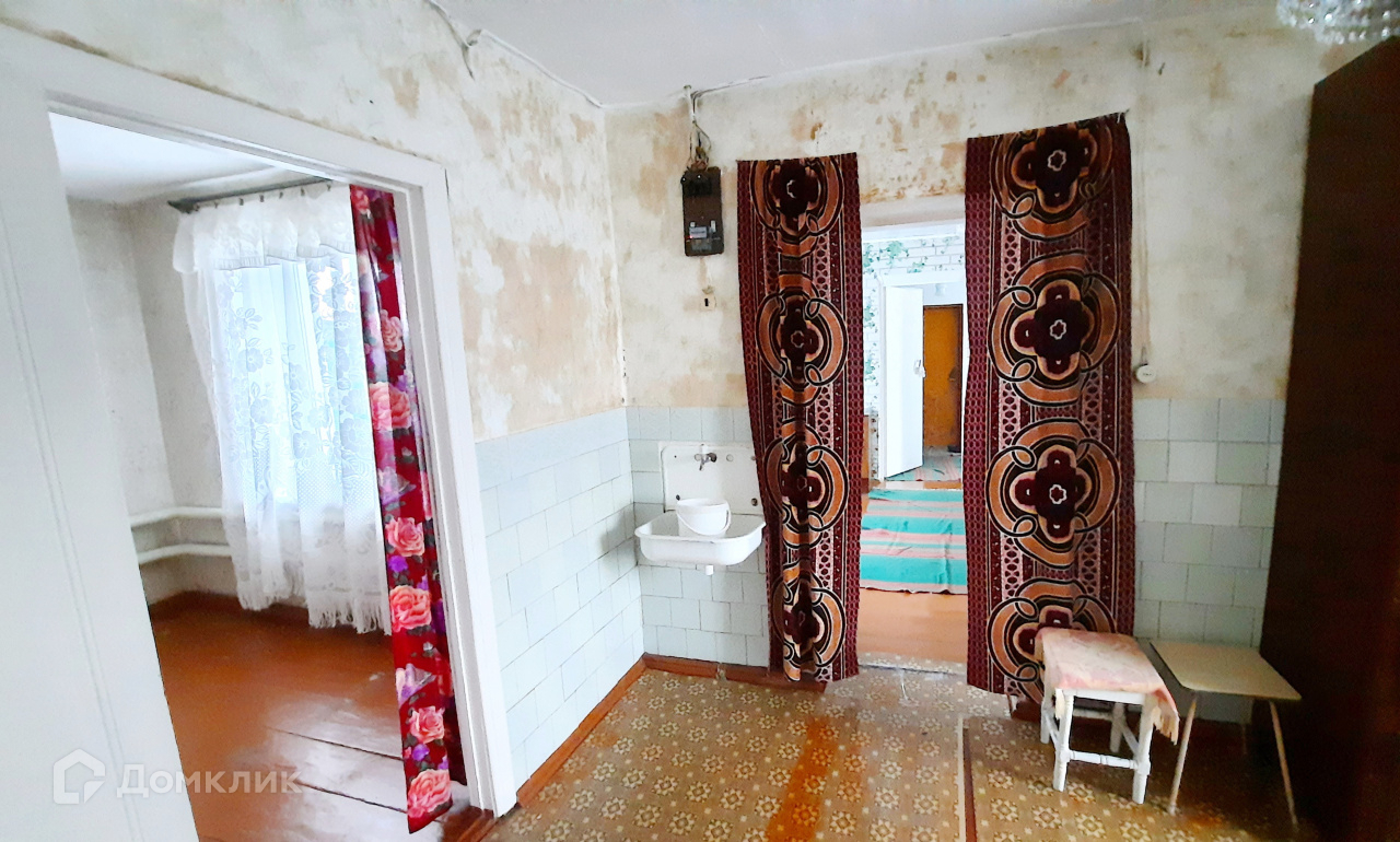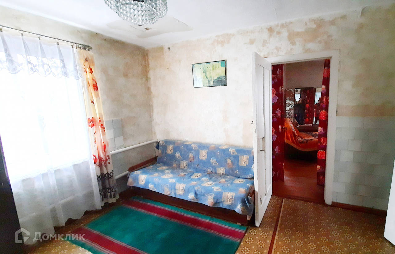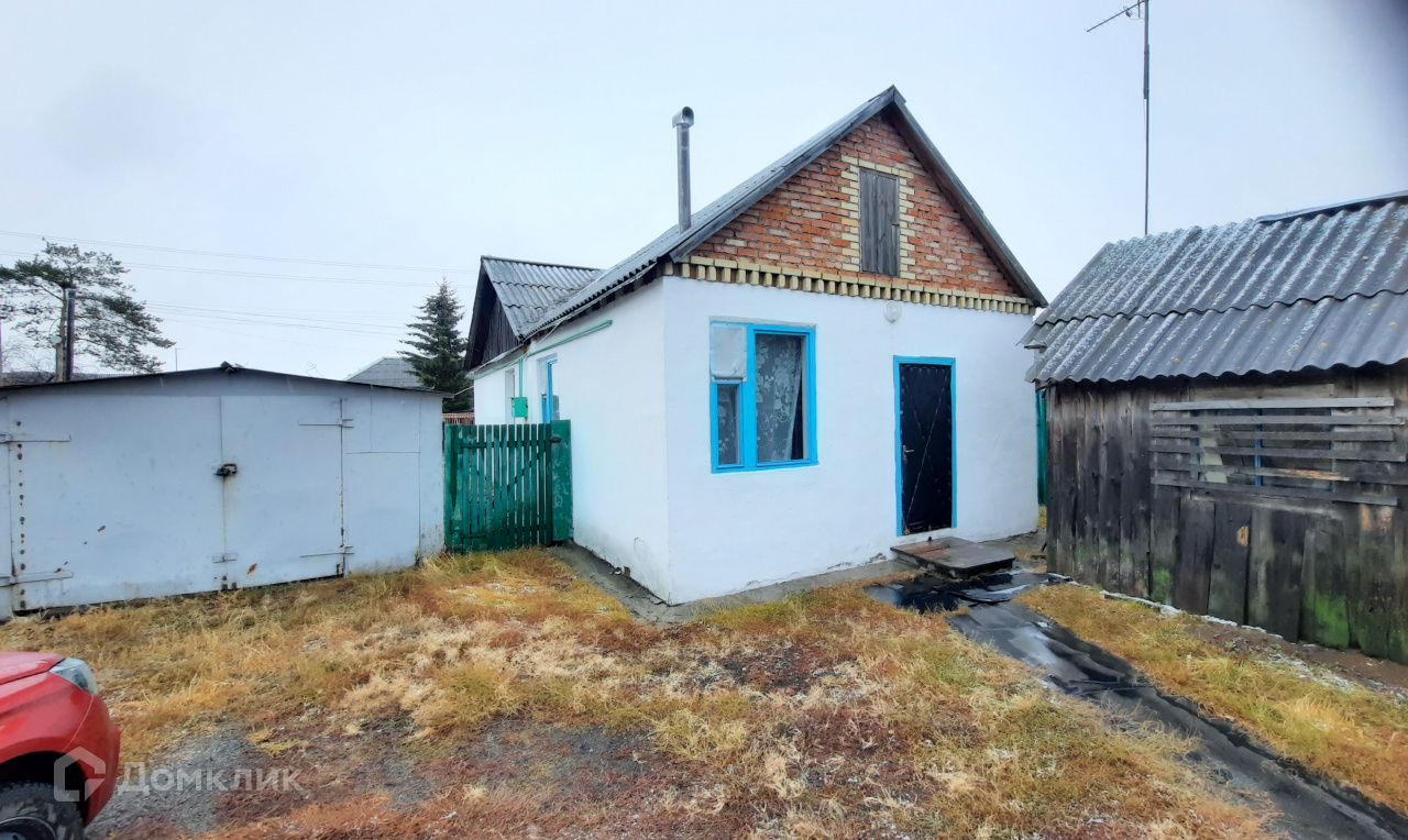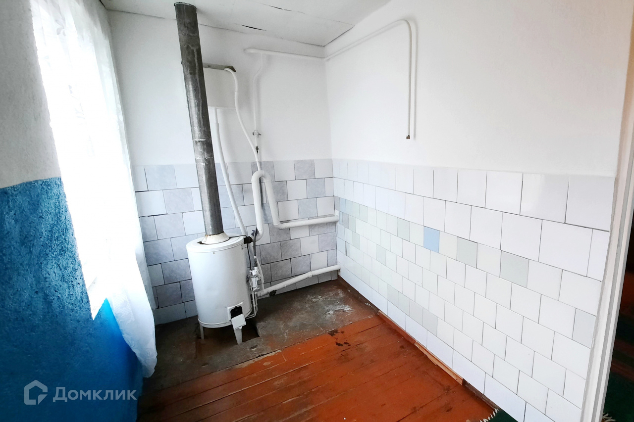 Стены кирпичные оштукатуренные, крыша – шифер. Центральный газ и центральный водопровод в доме, отопление  газовое. Туалет на улице.