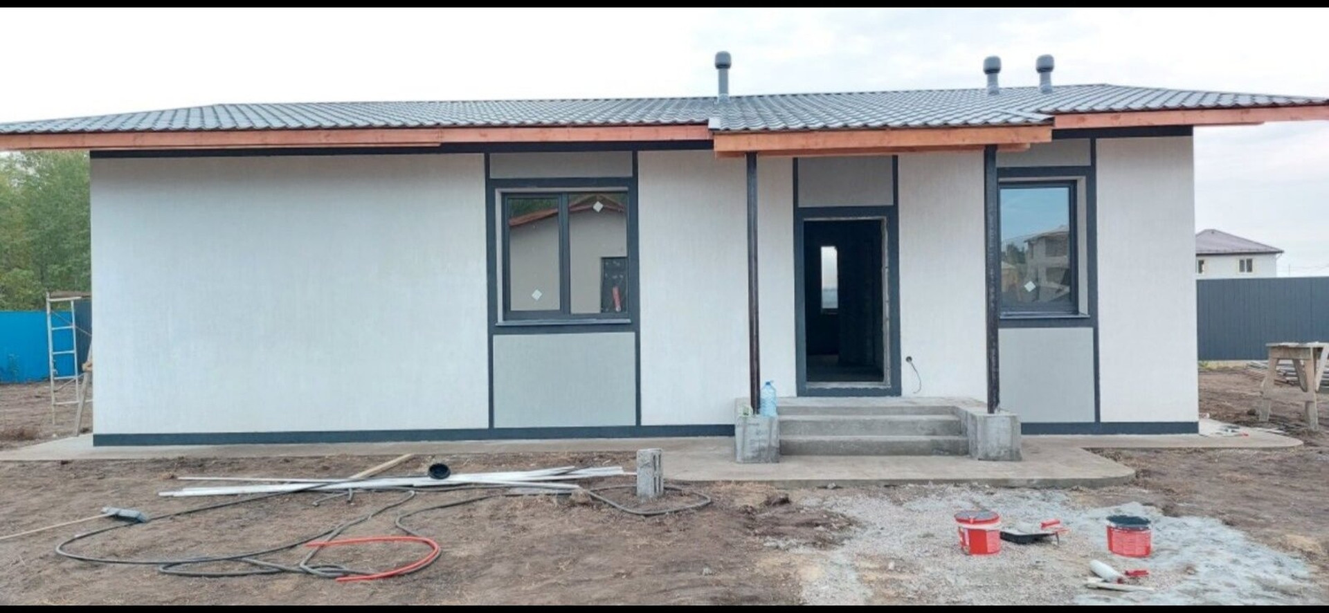 Продам - дом (на данном этапе идует внутренняя отделка). Прекрасный одноэтажный дом, на стадии завершения. Стоимость от 6950 т.р. (в нее входит участок ИЖС - 8 соток, нарядный лицевой забор с калиткой и распашными воротами, забор по периметру темный антрацит в цвет кровли дома, дом, крыльцо, септик - 10 кубов, скважина в кессоне, водоснабжение, водоотведение, электрическая разводка, теплый пол в полу (без сбора котельной)
