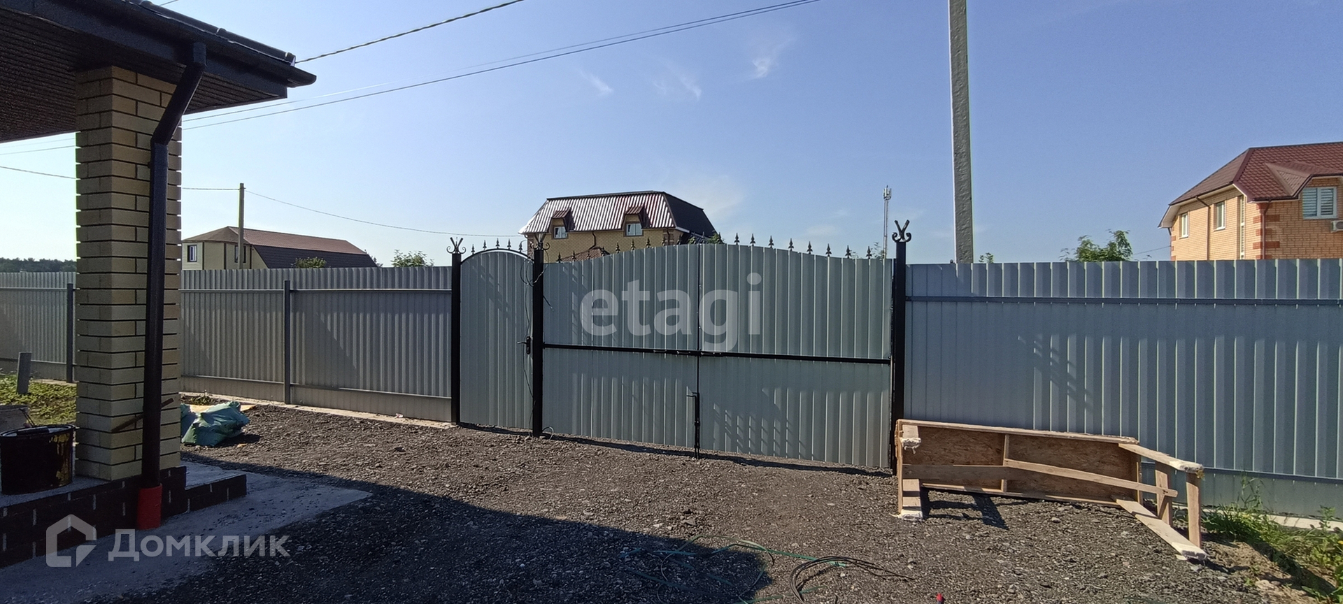 Участок выровнен,огорожен забором из профнастила, установлена ливневая канализация организована зона парковки, установлены ворота с ковкой, установлен домофон.