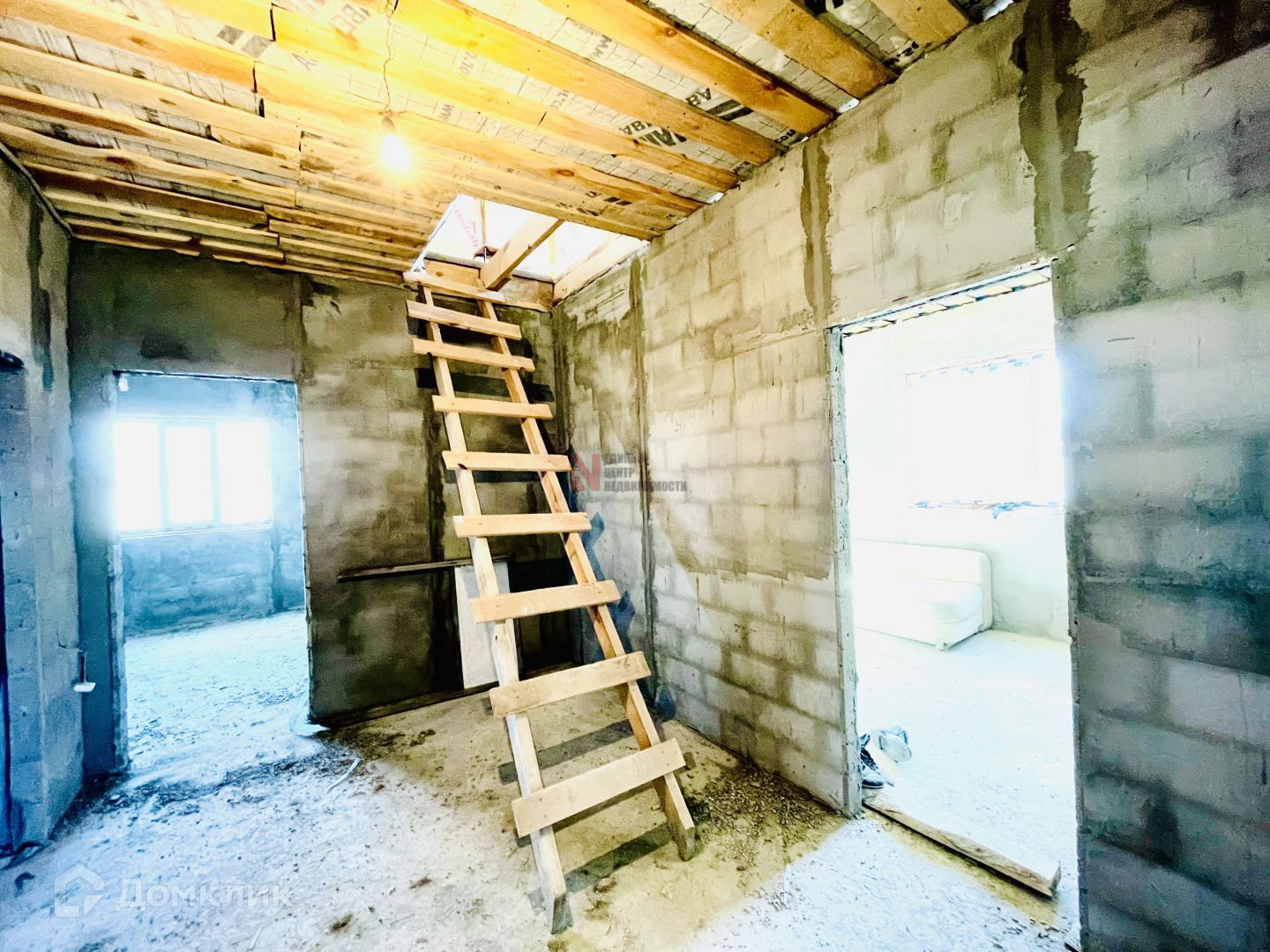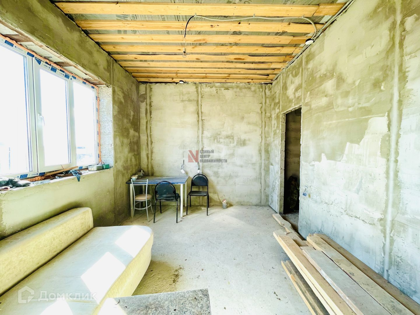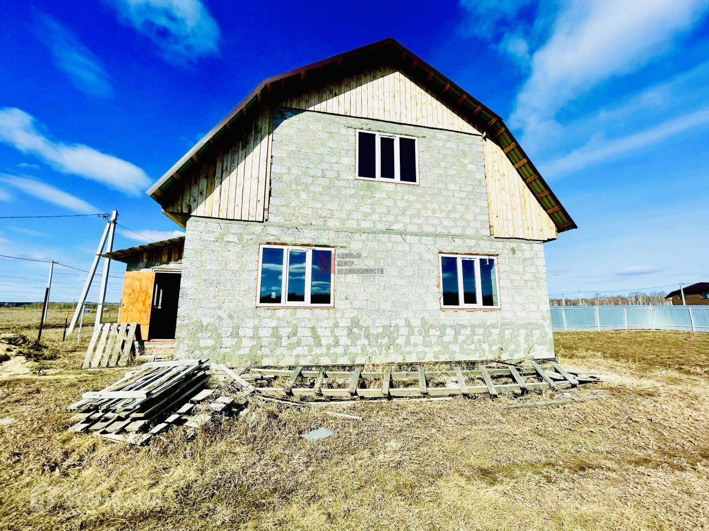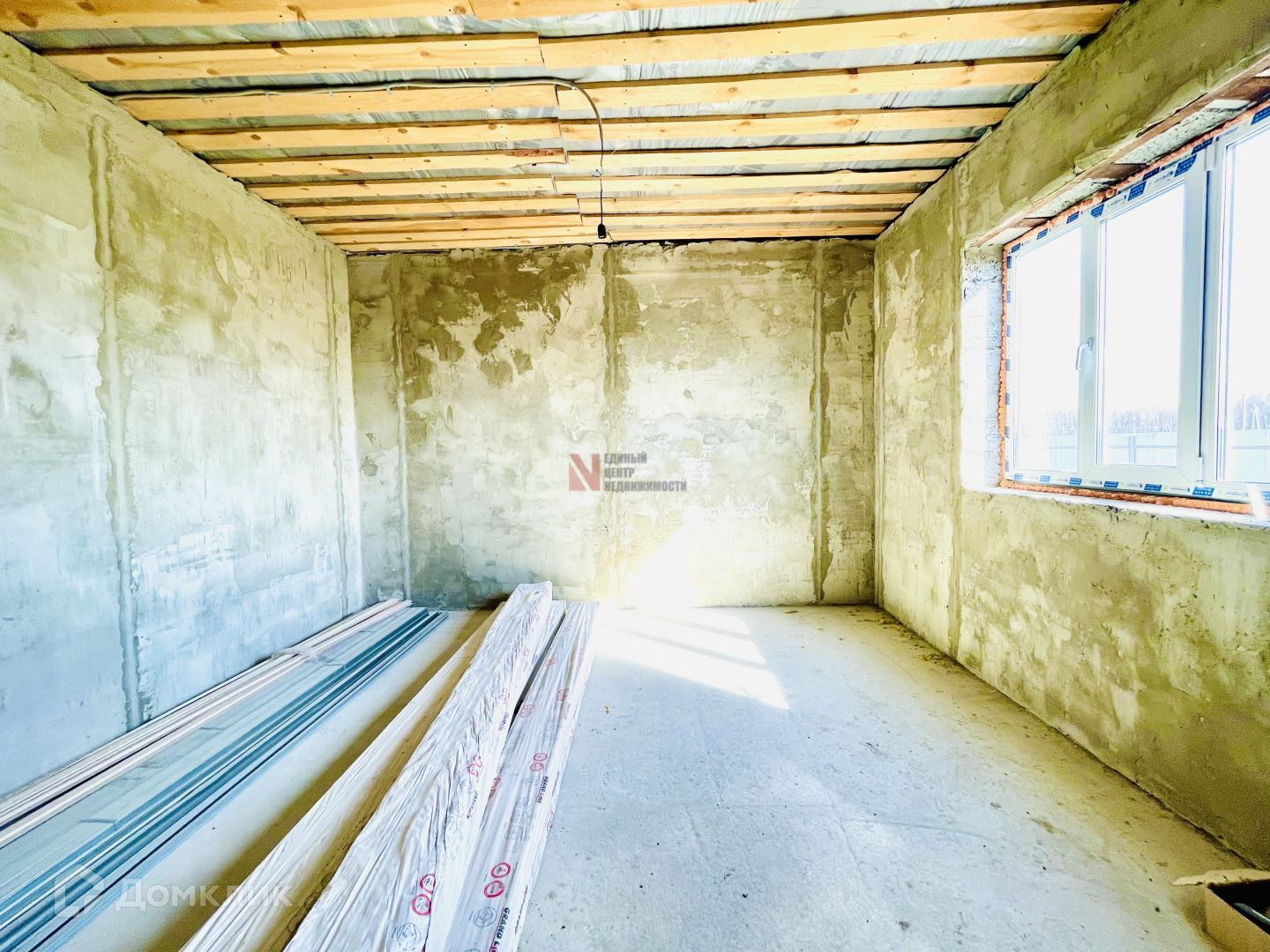 первый этаж отштукатурен.