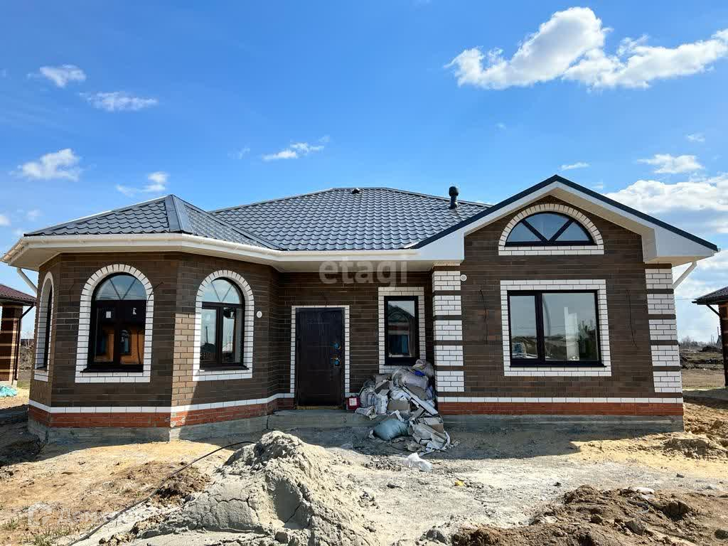 Продается современный одно этажный коттедж общей площадью 115 кв.м расположенный на земельном участке 8 соток.Одно этажный дом, фундамент на монолитной подушке 300 мм . Дом состоящий из 4 комнат, выполнен из керамзит блоков, облицован керамическим кирпичом, стены утеплены пенополистиролом. Крыша покрыта металлочерепицей и утеплена 20см слоем мин.ваты. Электричество заведено в дом, три фазы 220/380 Вт,отведенная электрическая мощность 15 кВт. Стены в внутри дома выровнены под маяк ,от шпаклеваны и подготовлены под чистовую отделку. Вода (скважина) заведена в дом. Водоотведение осуществляется в переливной септик, расположенный у границ участка. Кирпичный забор со вставками из проф настила, находится на фундаменте по периметру участка. Подъезд к дому щебень. Хорошая транспортная развязка.Дом располагается в около участка,который выделен под застройку школы, в непосредственной близости. По расстоянию от города, в 15 минутах езды от центра. Ходит городской транспорт. Рядом пос.Московский с развитой инфраструктурой. Очень перспективное место - комплексная, осваиваемая территория, на которой будет детский сад, школа, спортивные площадки и многое другое. Некоторые собственники уже построили дома. Коммуникации и обслуживание будет за счет средств муниципалитета. Электричество и газ уже подведены. На широких прямых улицах ведутся работы дорожного строительства, в данный момент дороги отсыпаны щебнем. В планах застройки прокладка централизованного водоснабжения и канализации, асфальтирование дорог и тротуаров. Выгодная покупка на перспективу.