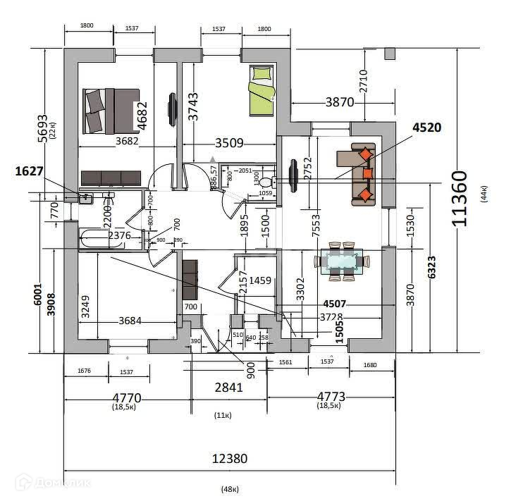Коттедж состоит из трех просторных комнат, построен из керамзитных блоков и облицован качественным силикатным кирпичом. Стены утеплены пенополистиролом, а крыша покрыта металлочерепицей с 20-сантиметровым слоем минеральной ваты, что обеспечивает отличную теплоизоляцию. Внутренние стены выровнены и готовы к чистовой отделке, что позволяет вам реализовать свои дизайнерские идеи.