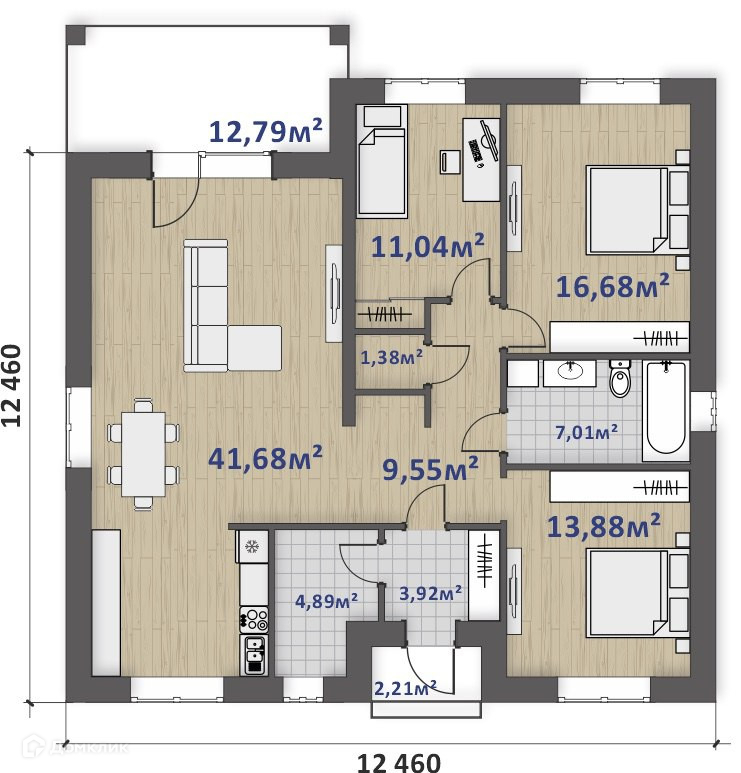 БЕЗ КОМИССИИ! Предлагается к продаже уютный дом (подряд).   Этот дом станет отличным вариантом для тех, кто хочет жить в тишине и спокойствии, но при этом иметь доступ ко всем удобствам городской жизни. Не упустите свой шанс стать обладателем собственного уютного уголка!    О ДОМЕ: — Улучшенная черновая отделка. — Общая площадь дома: 126 кв.м., 3 спальни, просторная кухня-гостиная - 43! кв.м., 2 санузла, прихожая. — Увеличенные оконные проёмы во всех комнатах. — Материал стен - керамзитоблок 250 мм, утеплитель пенополистирол ППС-10 100 мм, облицовочный керамический кирпич. — Фундамент - монолитная плита 300 мм с двойным армированием стальной арматурой d12. — Отопление - электрическое, по системе "тёплый пол". — Водоснабжение - скважина 40 м. — Канализация - септик. — Крыша - утеплитель минеральная вата 250 мм., деревянная стропильная система, покрытие кровли металлочерепицей Монтеррей 7024 графит.   О РАЙОНЕ: — Район имеет уникальное расположение - в непосредственной близости к экологически чистой природе. — Удобная транспортная развязка. — Близость города: 10 минут, при спокойном темпе езды!    О СДЕЛКЕ: —  Подходит под ипотеку, рассрочка. —  Документы готовы к продаже.  —  Без обременения. —  Прямая продажа. —  Полное юридическое сопровождение. —  Без комиссии.   ПОЧЕМУ МЫ? — Низкие ставки по ИПОТЕКЕ благодаря скидкам от наших банков-партнеров. — Скидки по страховке до 50% от страховых компаний-партнеров. — Полное сопровождение сделки от выбора объекта до новоселья. — Широкая специализация на рынке недвижимости. — Высококвалифицированные специалисты, которые помогают Вам во всем процессе продаж. — Трансфер для просмотра дома