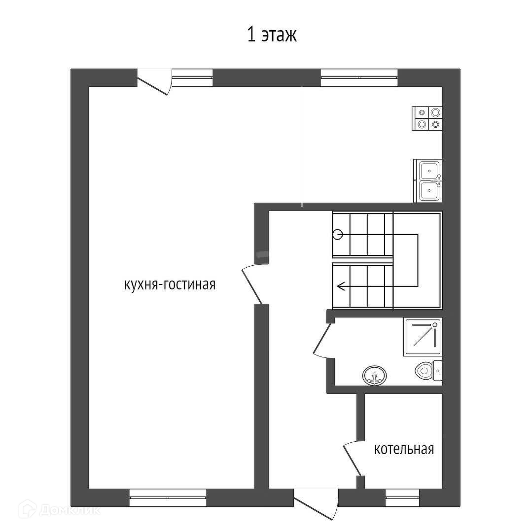 На первом этаже расположены котельная, гостевой туалет и просторная кухня-столовая.