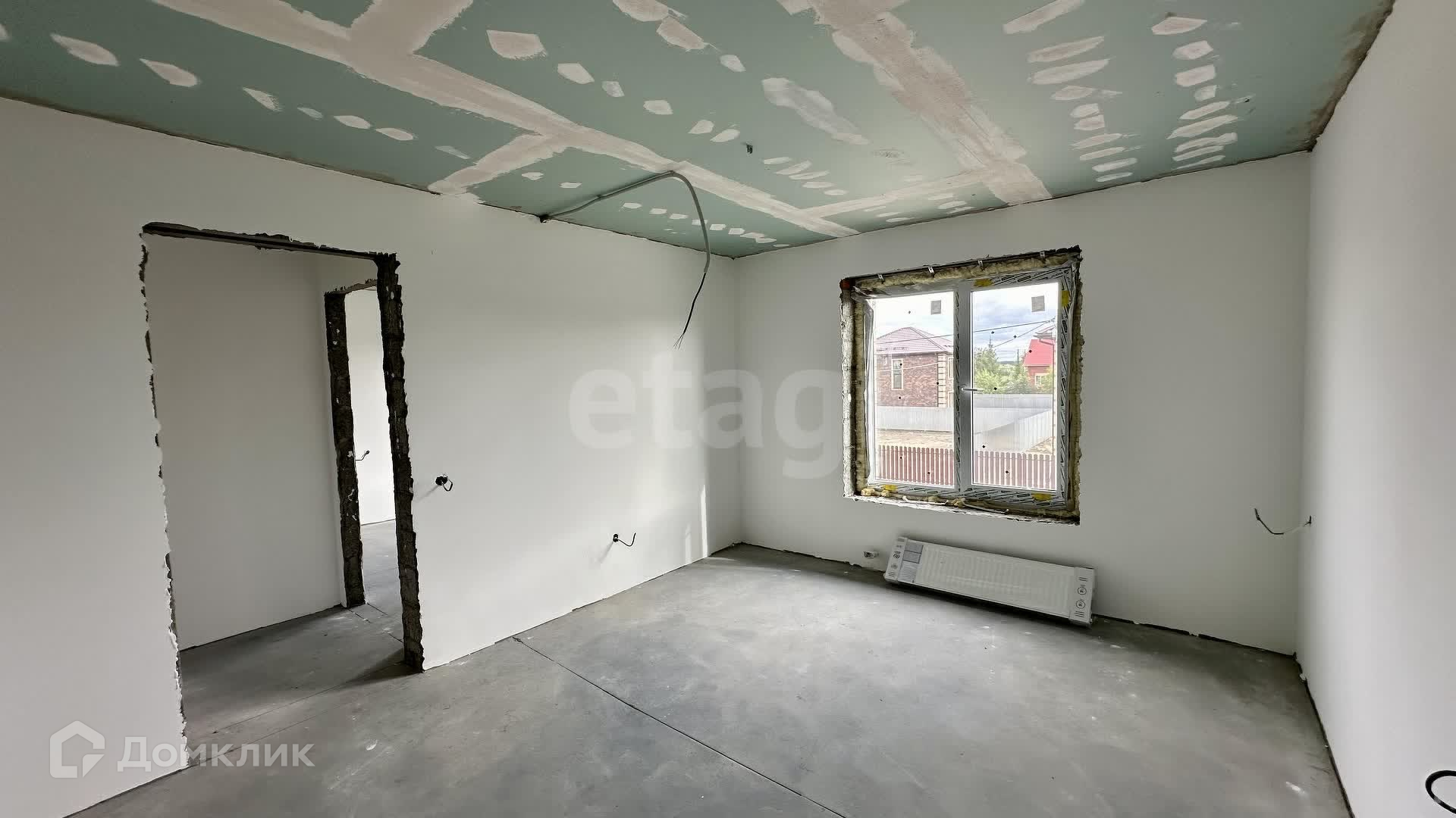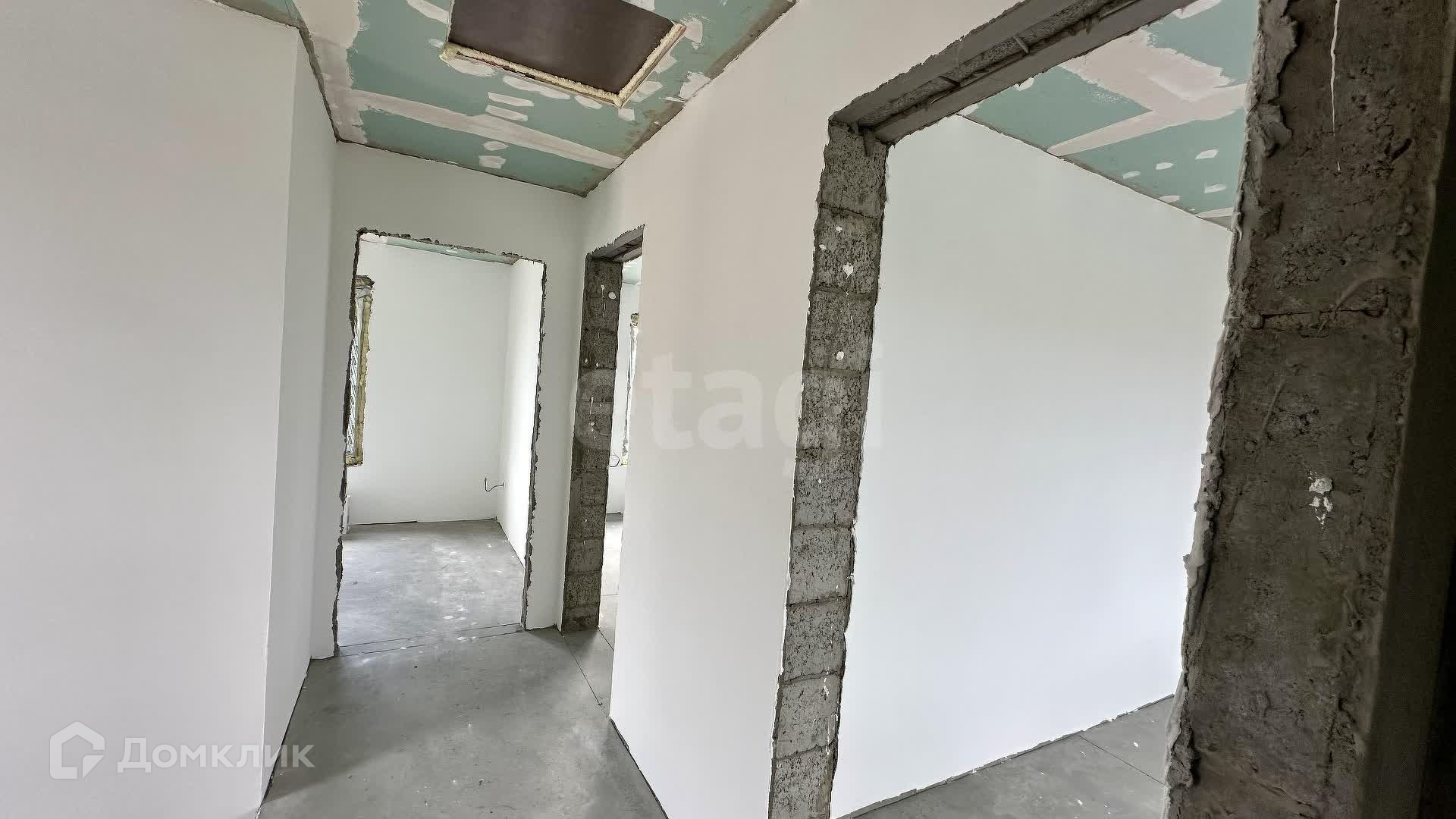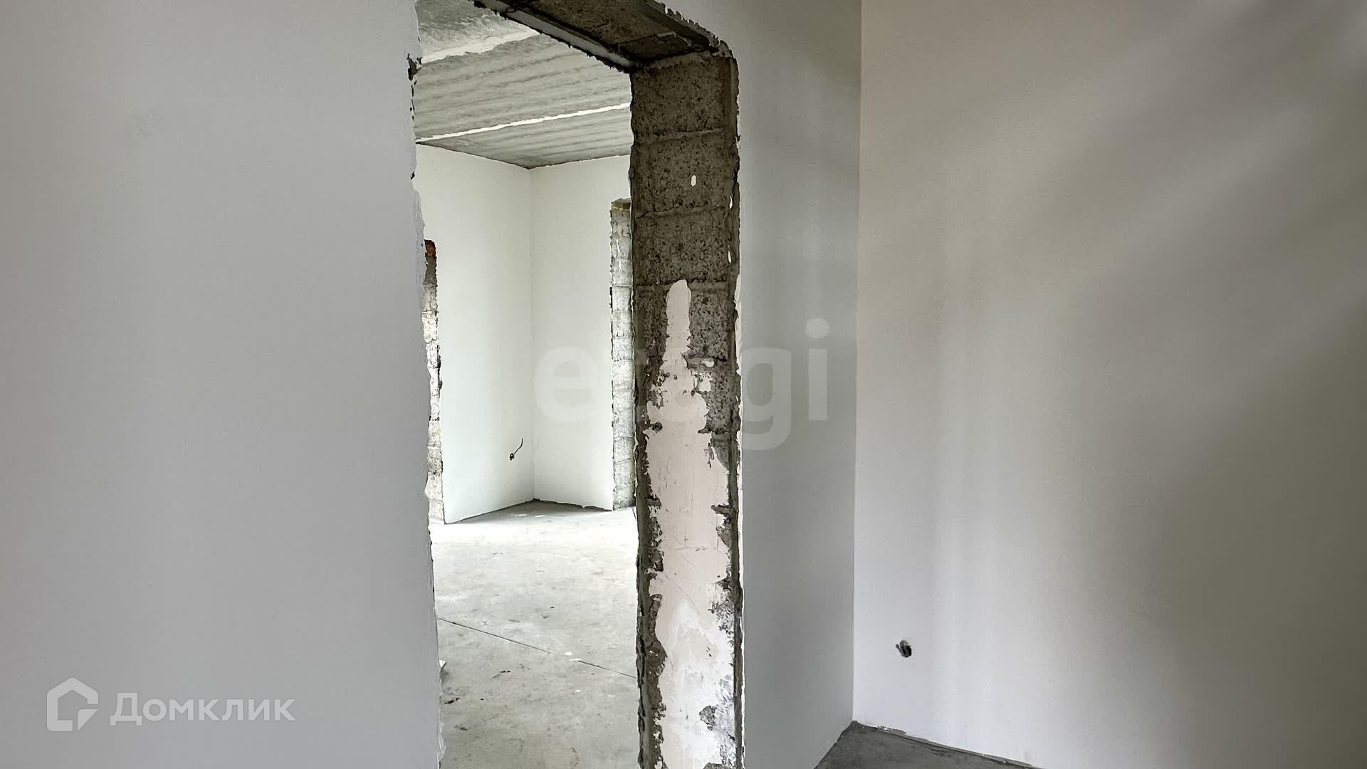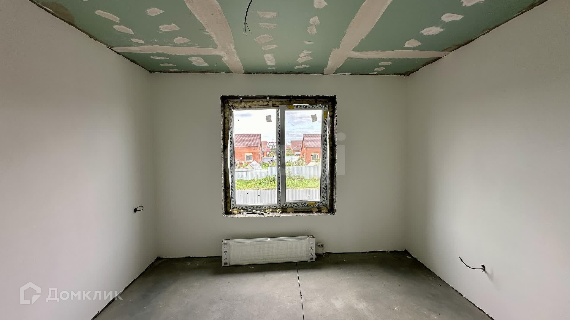 Внутренние работы выполнены с высоким качеством: стены отштукатурены и выровнены под маяк, готовые к поклейке обоев.