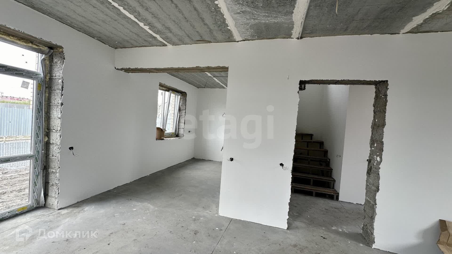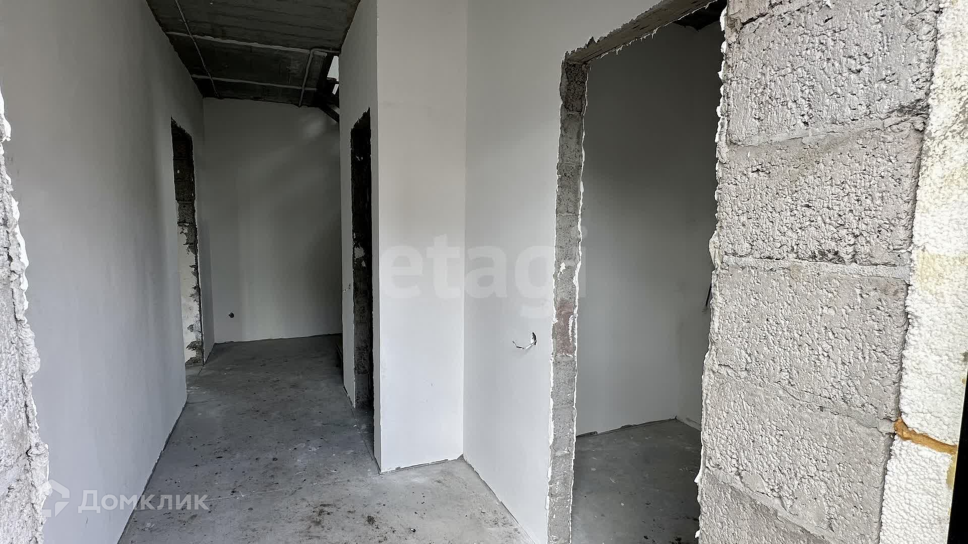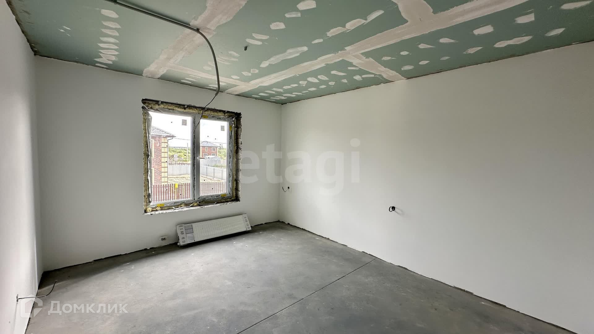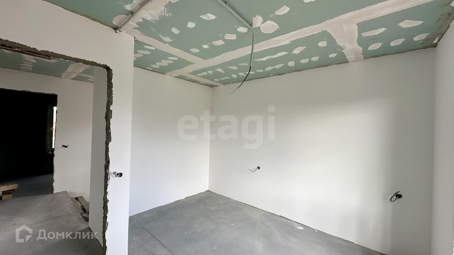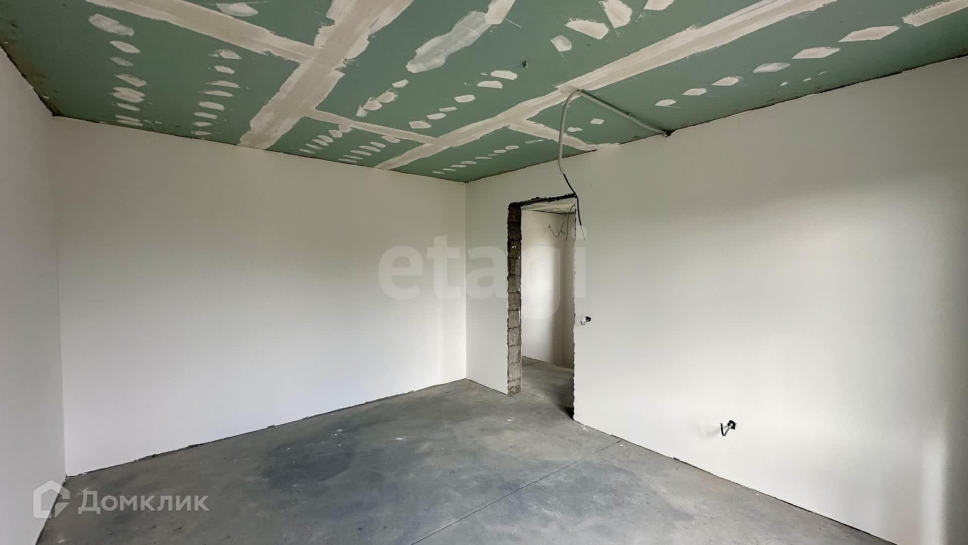 Внутренние работы выполнены с высоким качеством: стены отштукатурены и выровнены под маяк, готовые к поклейке обоев.