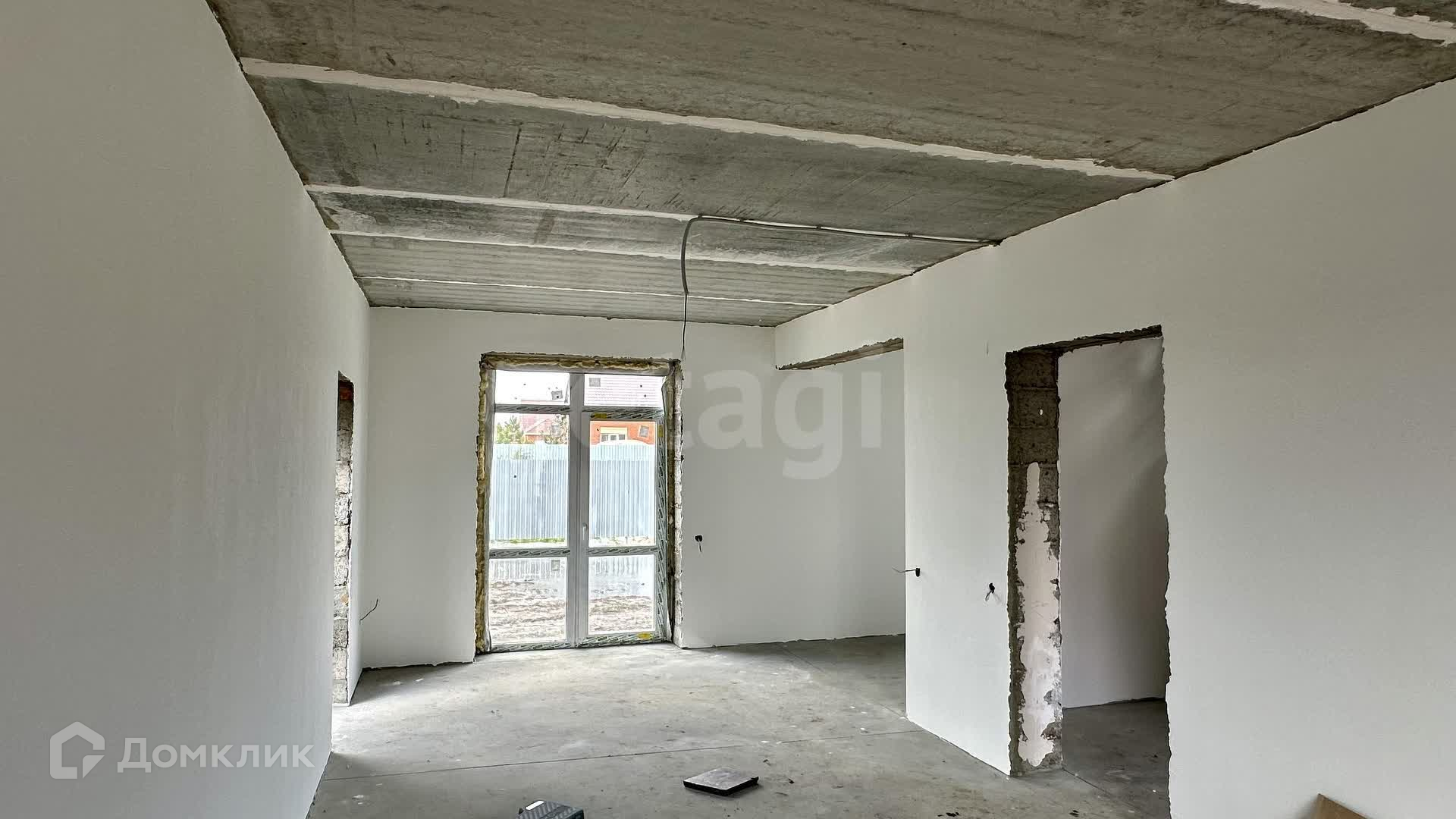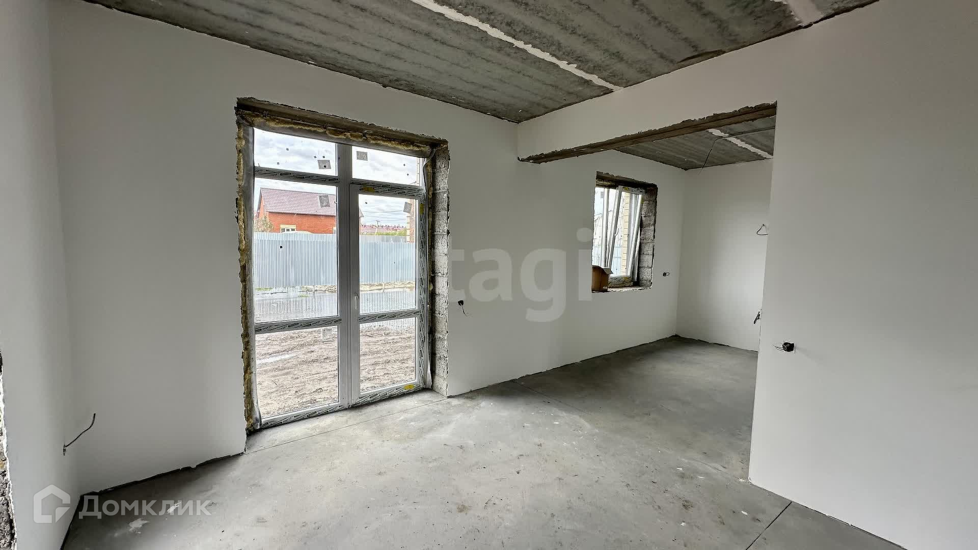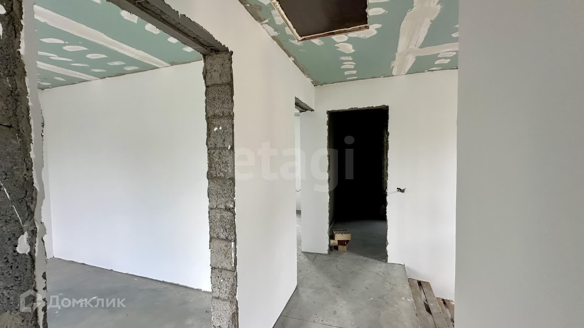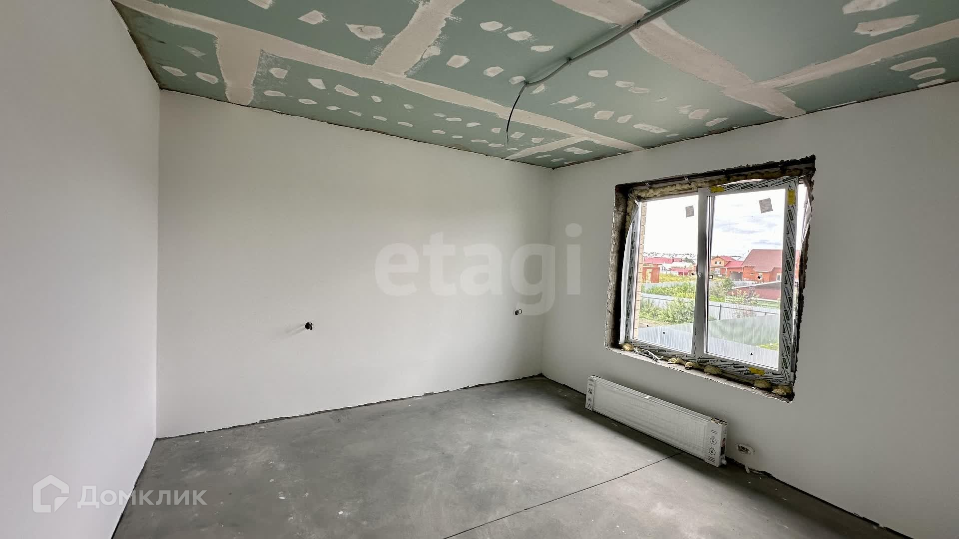 Внутренние работы выполнены с высоким качеством: стены отштукатурены и выровнены под маяк, готовые к поклейке обоев.