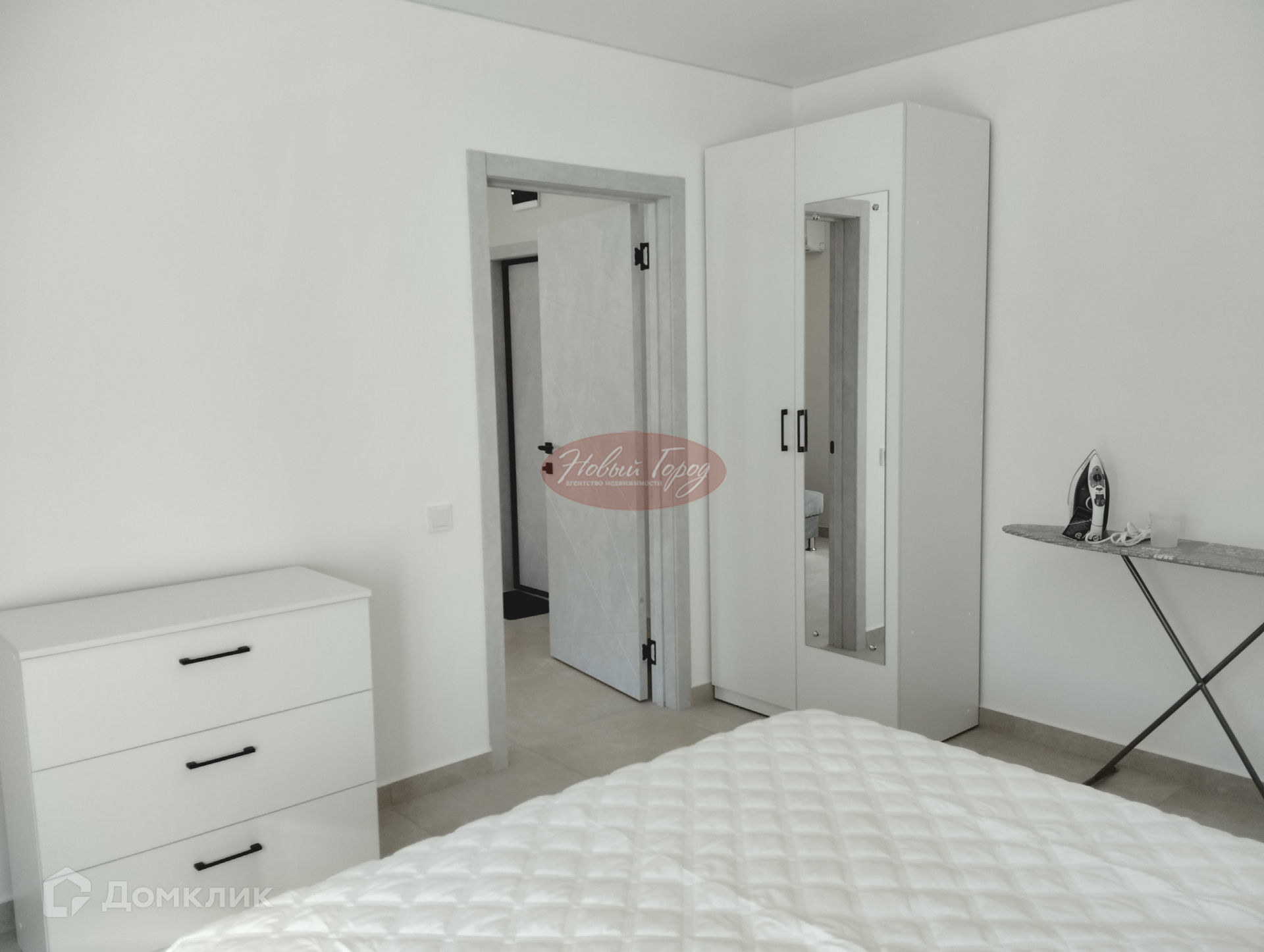 В спальне - 2х спальная кровать, шкаф, комод, кондиционер.