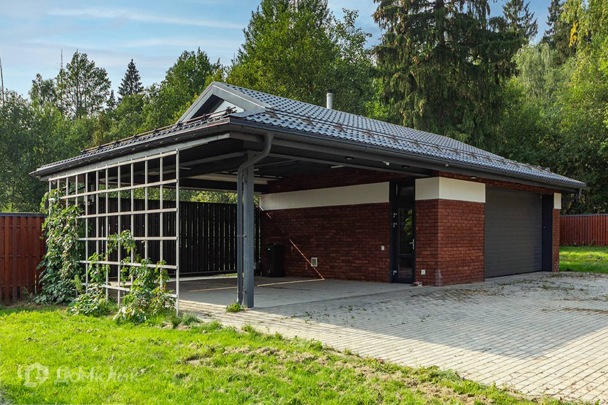 Загородный дом площадью 200 м2 построен на участке площадью 20 соток со своим выходом в лес в коттеджном посёлке "Падиково". В доме спланировали 3 спальни с крытыми балконами, гостиную с выходом на участок, а также сауну. На участке отдельно построен отапливаемый гараж с навесом и хозблоком, выполнен ландшафтный дизайн, посажен газон, растут деревья, установлена охранная система, уличное освещение и автоматические ворота