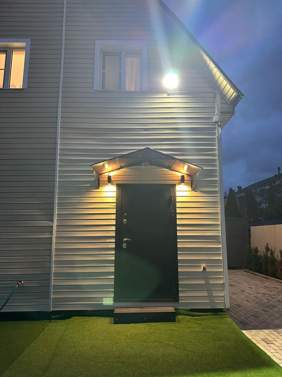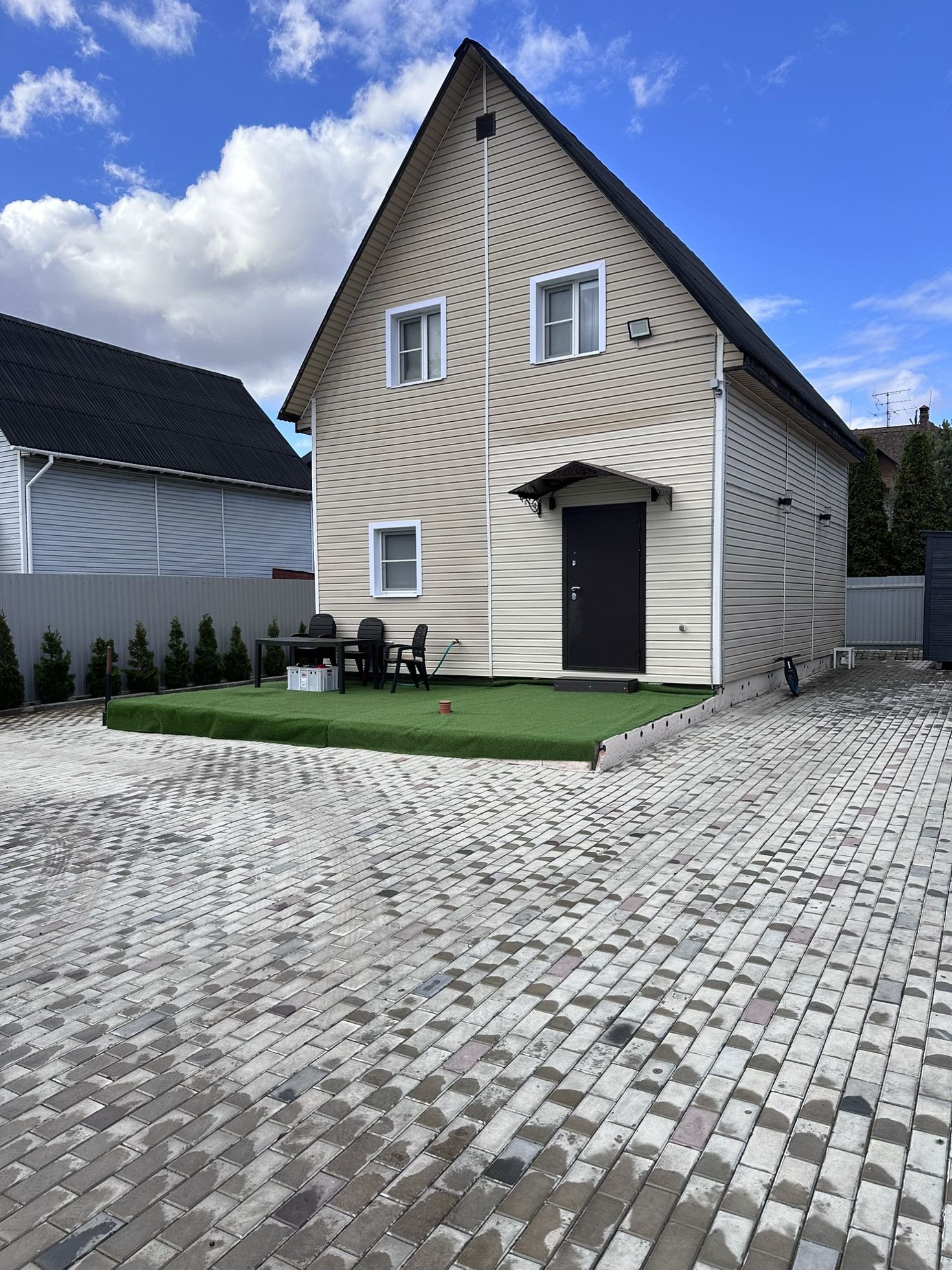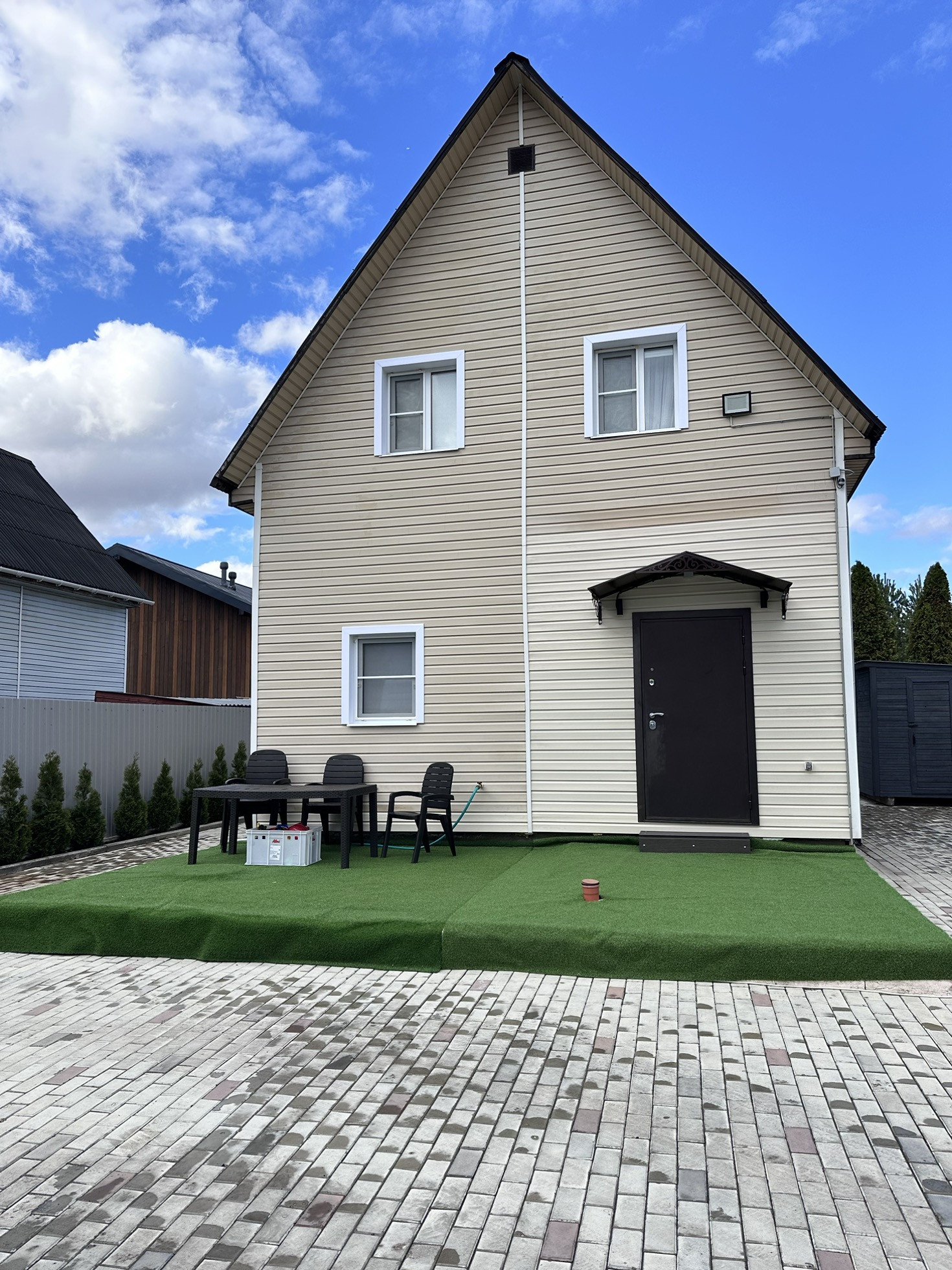 Продается дом в деревне Падиково, в 27км по высокоскоростному Новорижскому шоссе. Полностью готов к проживанию. Дом продается с мебелью и всей встроенной бытовой техникой. Дом двухэтажный, состоит из кухни-гостиной, 2-х спален. На каждом этаже есть санузел, с полным комплектом сантехники и водоочистной установкой американской электроникой. Отопление водяное электрическое. Газовая труба у дома, осталось завести в дом. Высокоскоростной интернет. Потолки 2,6м. Кухонный гарнитур «стильные кухни», еще на гарантии. Встроенная бытовая техника. На всех окнах дополнительно рулонные шторы. Дом стоит на надежном фундаменте цельной плиты. Коробка дома построена из газоблока. Наружная отделка - сайдинг. Перекрытия -деревянные. Внутренняя отделка- дерево. На территории вдоль забора высажены туи. По периметру дома установлена подсветка фасада, а также на лицевой стороне установлен прожектор с датчиком движения. Участок полностью огорожен забором высотой 2.20. Автоматические ворота длиной 6м. Электропривод ворот- Итальянский. Во двор спокойно входит практически вся грузовая техника. Участок полностью выровнен, уложен арматурой, залит бетон 15 см. Поверх уложена брусчатка. Сделан правильный уклон, вода всегда уходит. Канализация с переливом состоит из 2-х колодцев. 1-й на 3 кольца, 2-й на 4 кольца. Вода выведена на улицу. Имеется хозблок. С лицевой части дома залит фундамент 3*7 м. По желанию можно поставить террасу, или увеличить площадь дома. Дом находится на тупиковой улице, где ездят, в основном, только свои машины. Подъезд к дому, с основной дороги, уложен асфальтовой крошкой.