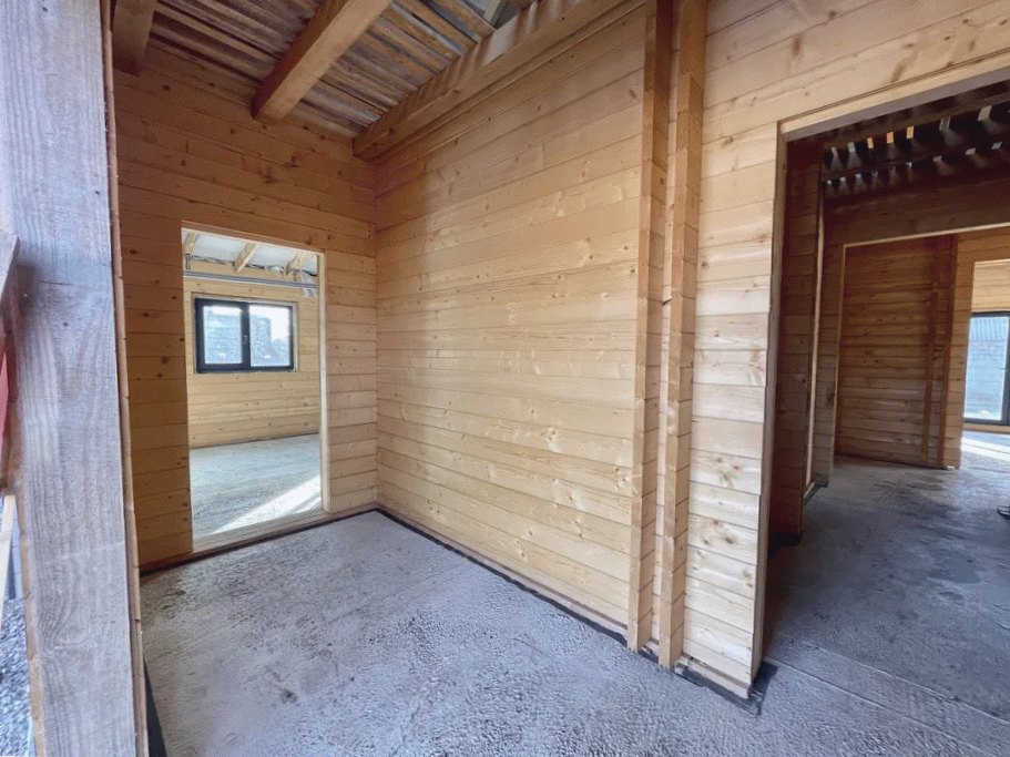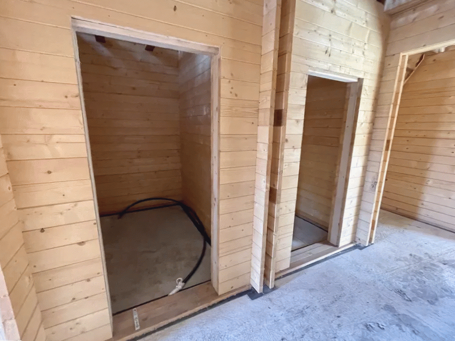 Сам дом построен из рубленного бревна, все делали для себя с соблюдением всех строительных норм. Фундамент ленточный, крыша металлочерепица. Перекрытия частично монолитные, частично деревянные. На первом этаже в коридоре, на кухне и санузле теплый пол.