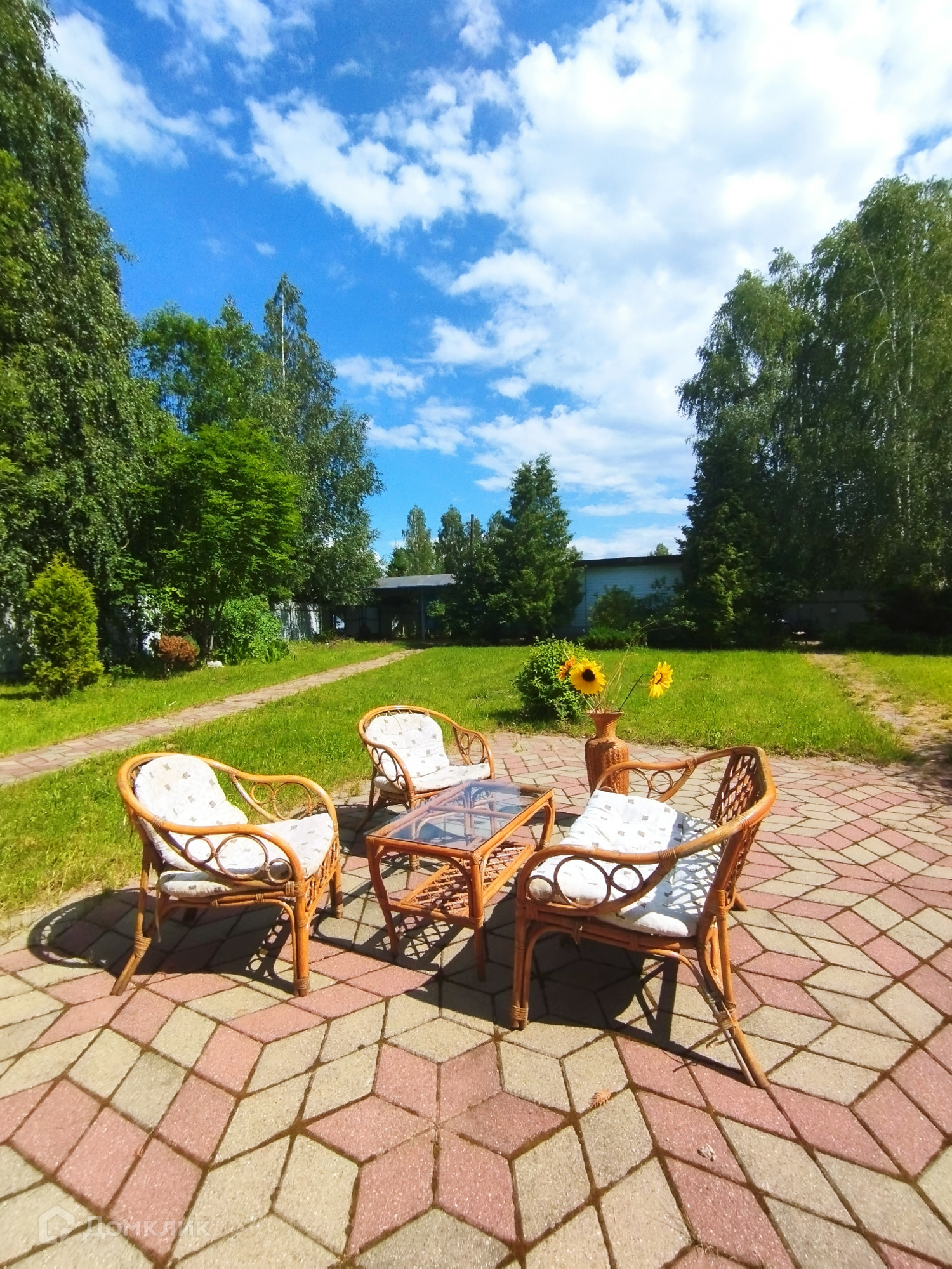 Территория, так же как и дом, продумана до мелочей. Для дизайна, на участке высажены декоративные и плодово-ягодные деревья и кустарники. Для детских подвижных игр имеется просторная лужайка.