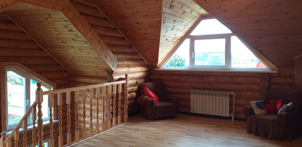 На втором этаже большая комната и 2 спальни.