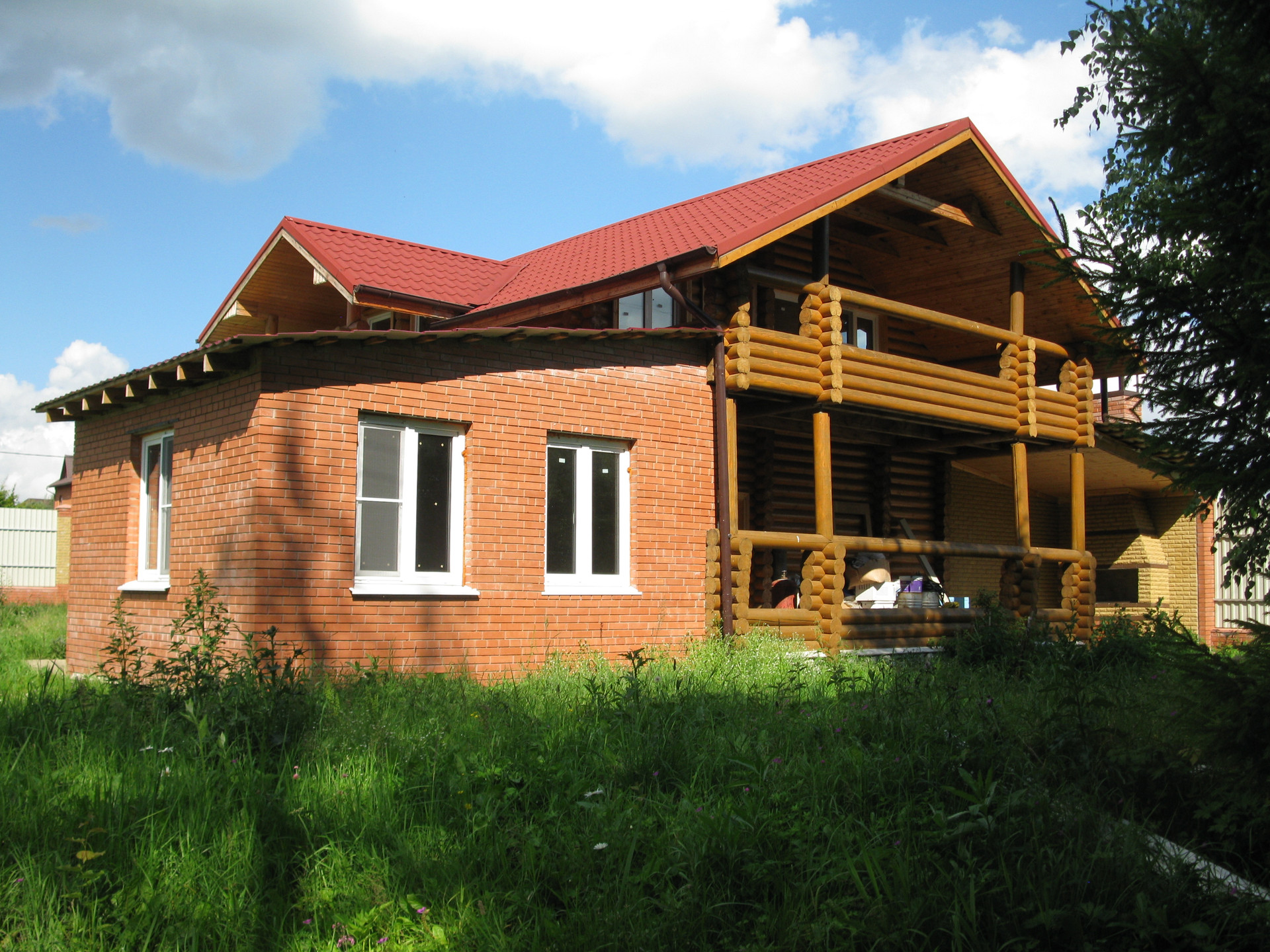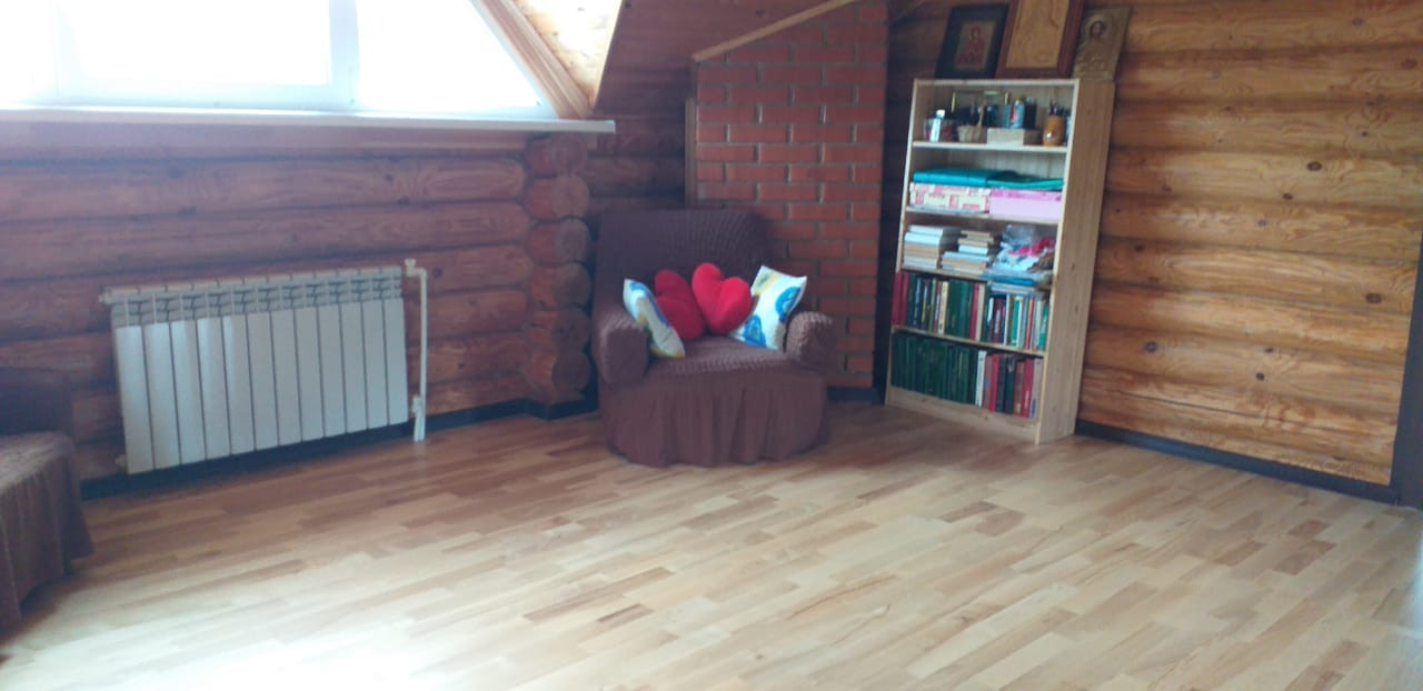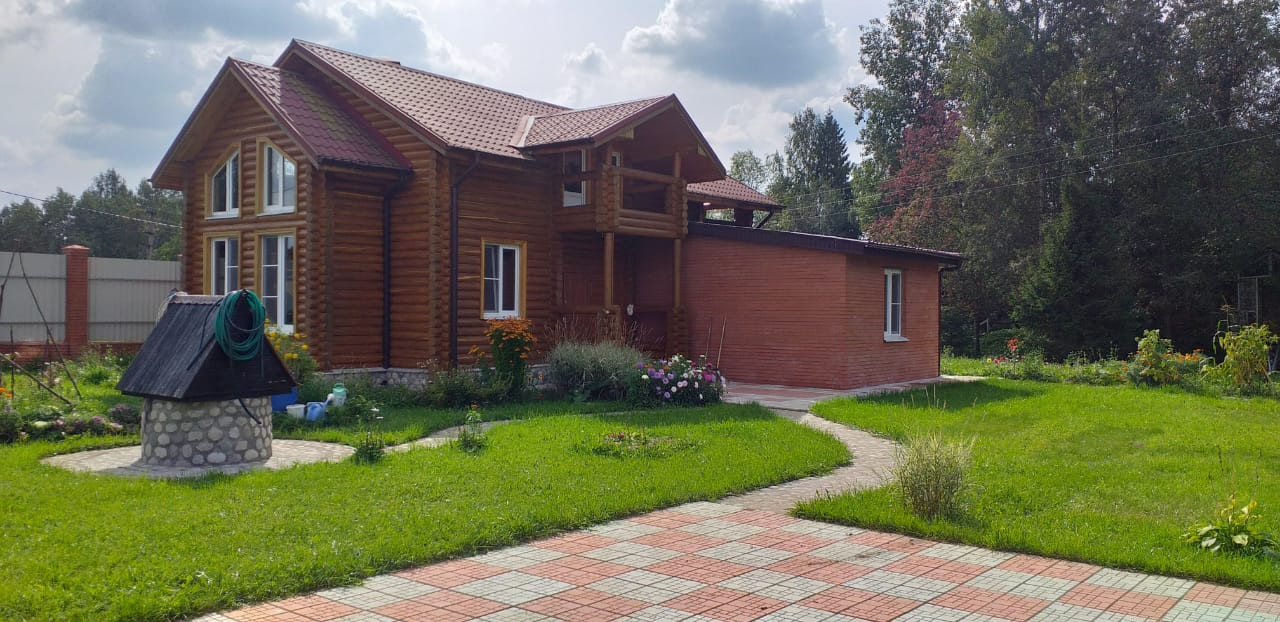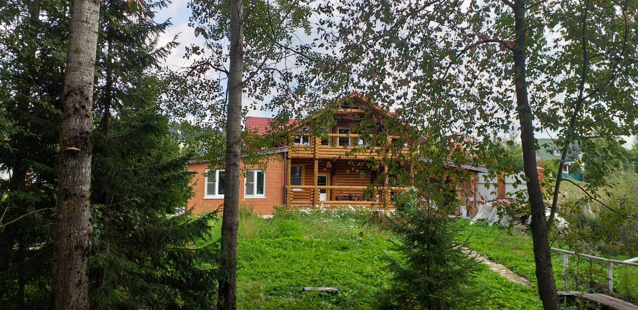 Деревянный дом из бревна 12,5 м на 7 м, кухня кирпичная 5 на 5, а так же из кирпича пристройка 4 на 6,5 в которой: парилка, бойлерная и душевая. Дом 150 м.кв.  в 2 этажа на огромном участке около 30 соток (по документам 15), который примыкает к речке Пахорка, что обеспечивает сухость участка в любую погоду. В доме есть все – заходи и живи.  На участке есть место для строительства еще одного дома.