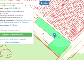 Продаётся земельный участок Псковский р-н д. Паклино Площадь 5,2 Га Категория земель: земли населенных пунктов, ИЖС КН 60:18:0142601:519 |