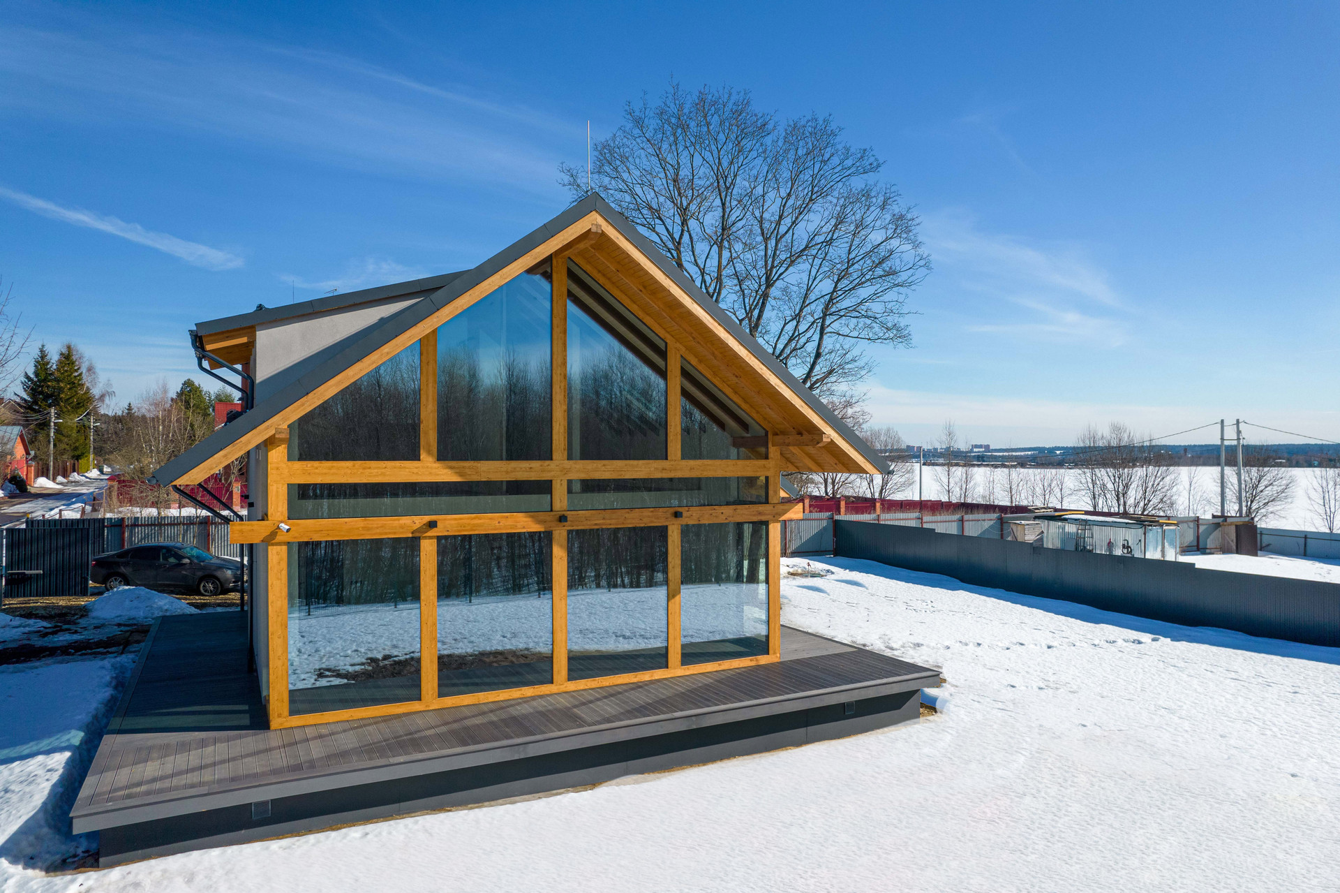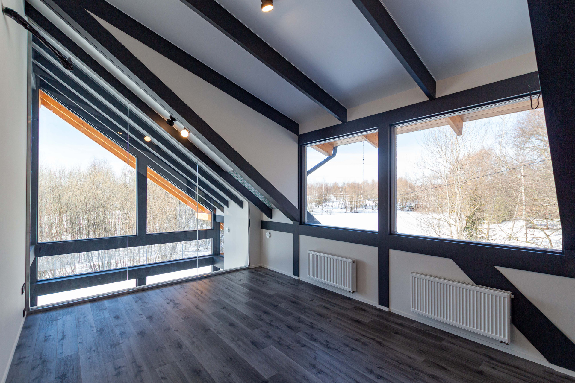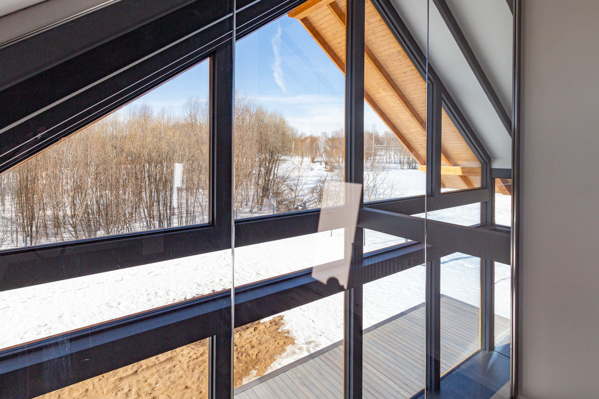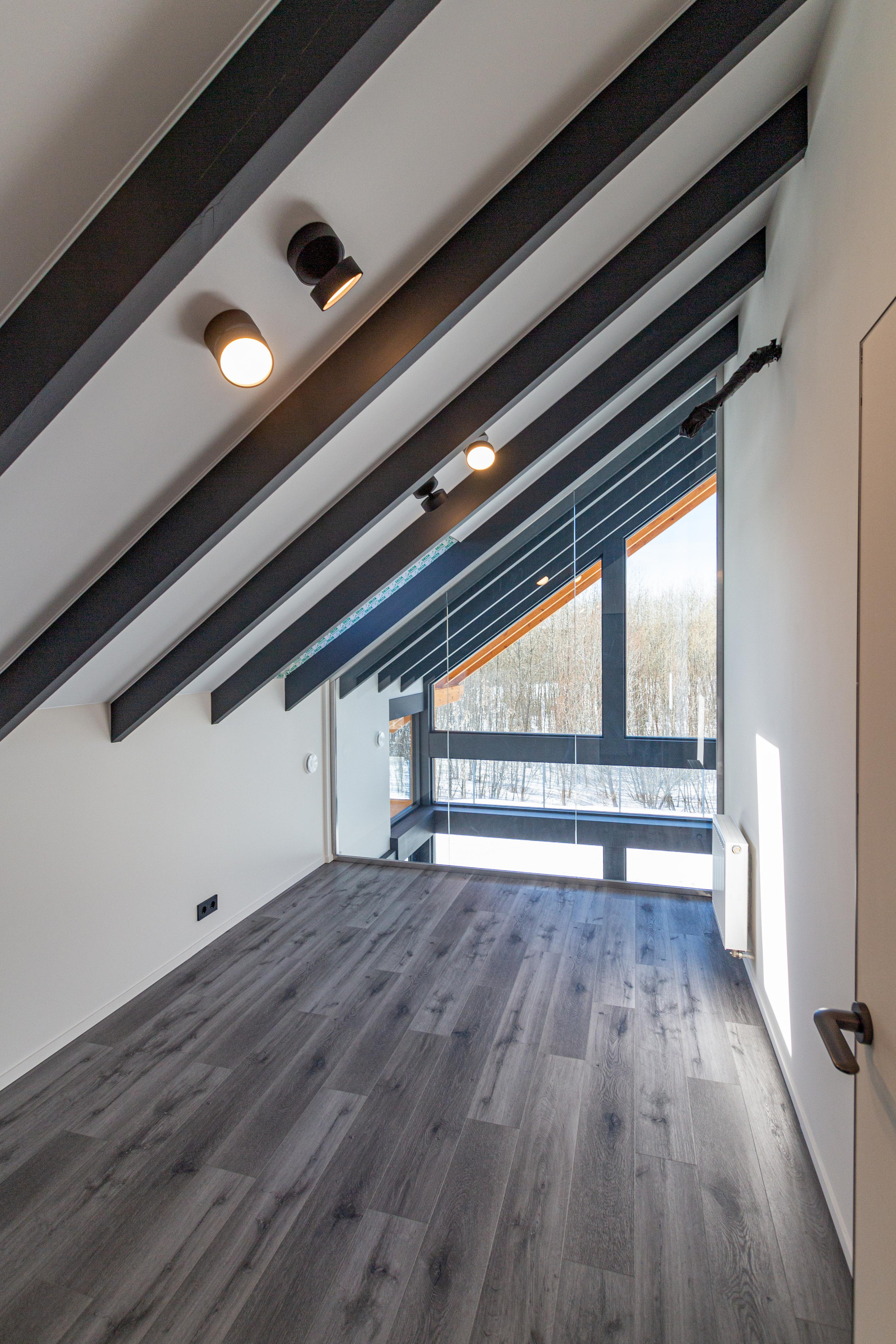 Конструктив дома: Фундамент - ж\б сваи. Силовые конструкции - клееный брус. Утепление стен (80мм), кровли (80 мм), пола (140 мм) - PIR панели. Покрытие кровли - кликфальц от Grand Line. Панорамное остекление энергоэффективными оконными конструкциями. Дополнительное остекление спальных 2 этажа - мансардные окна Velux.