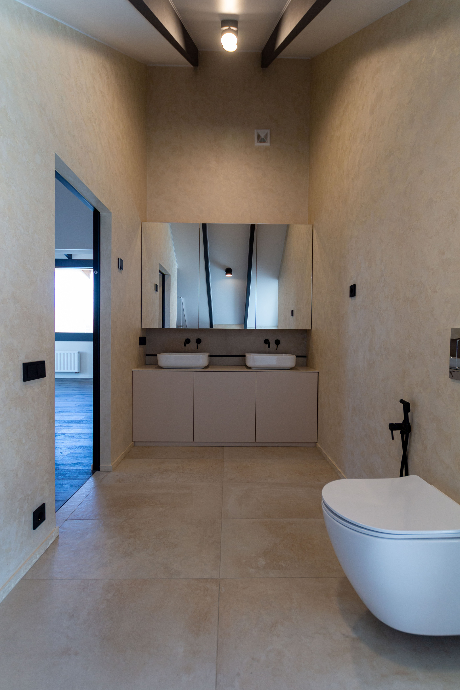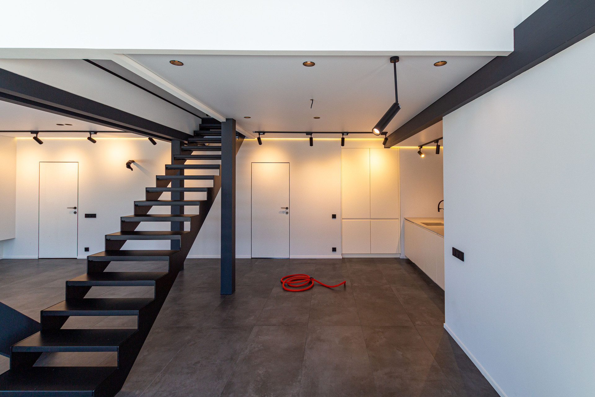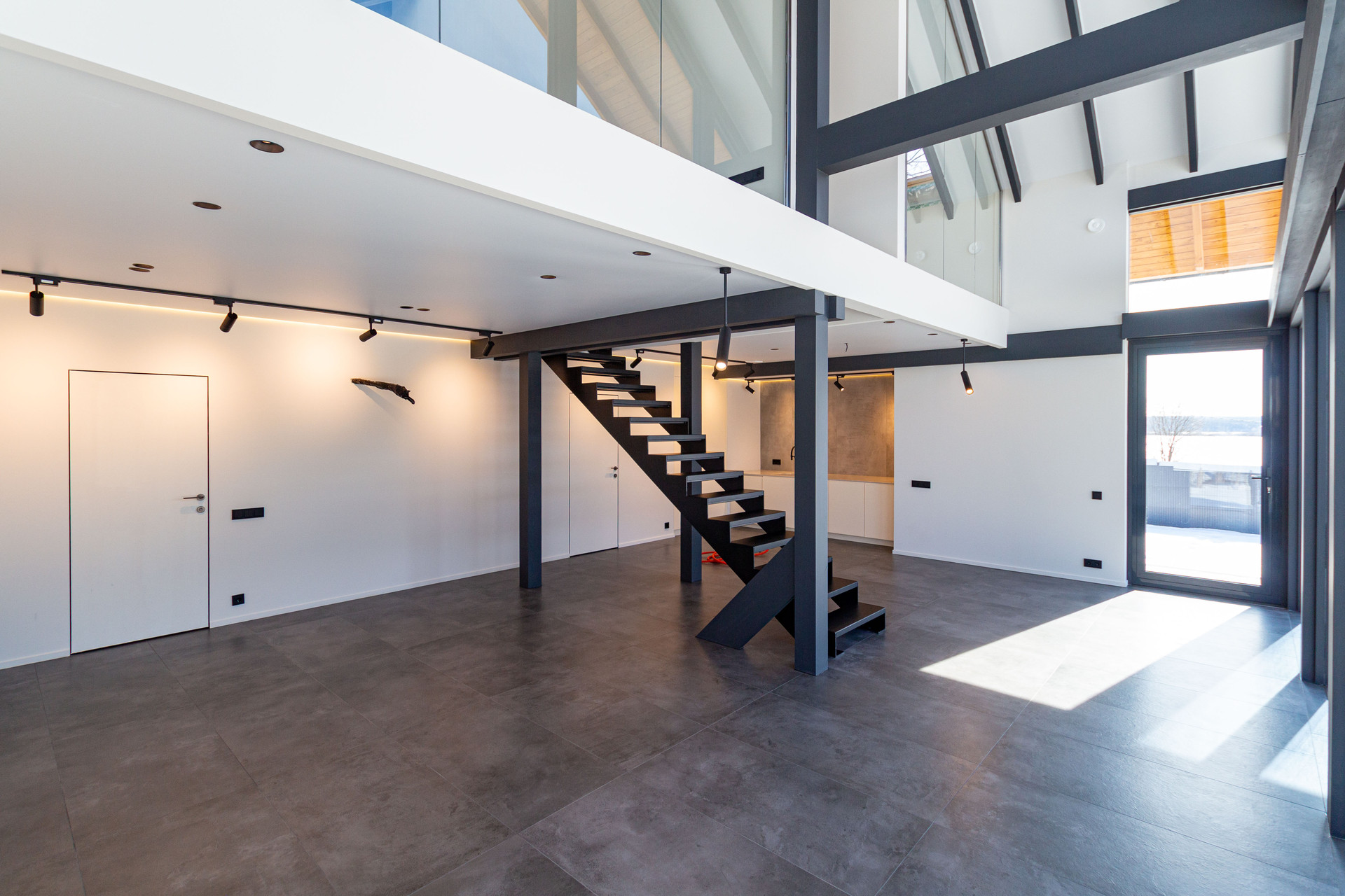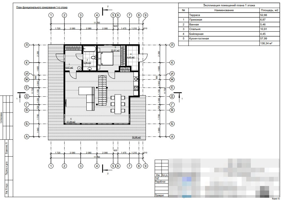 На 1 этаже расположена просторная гостиная с интегрированной кухонной зоной 58 м2, спальная (кабинет) 11 м2, санузел, котельная (с отдельным входом). На втором этаже 2 спальни:30 м2 и 11,2 м2, санузел с душевой. Открытая терраса - 53 кв.м.