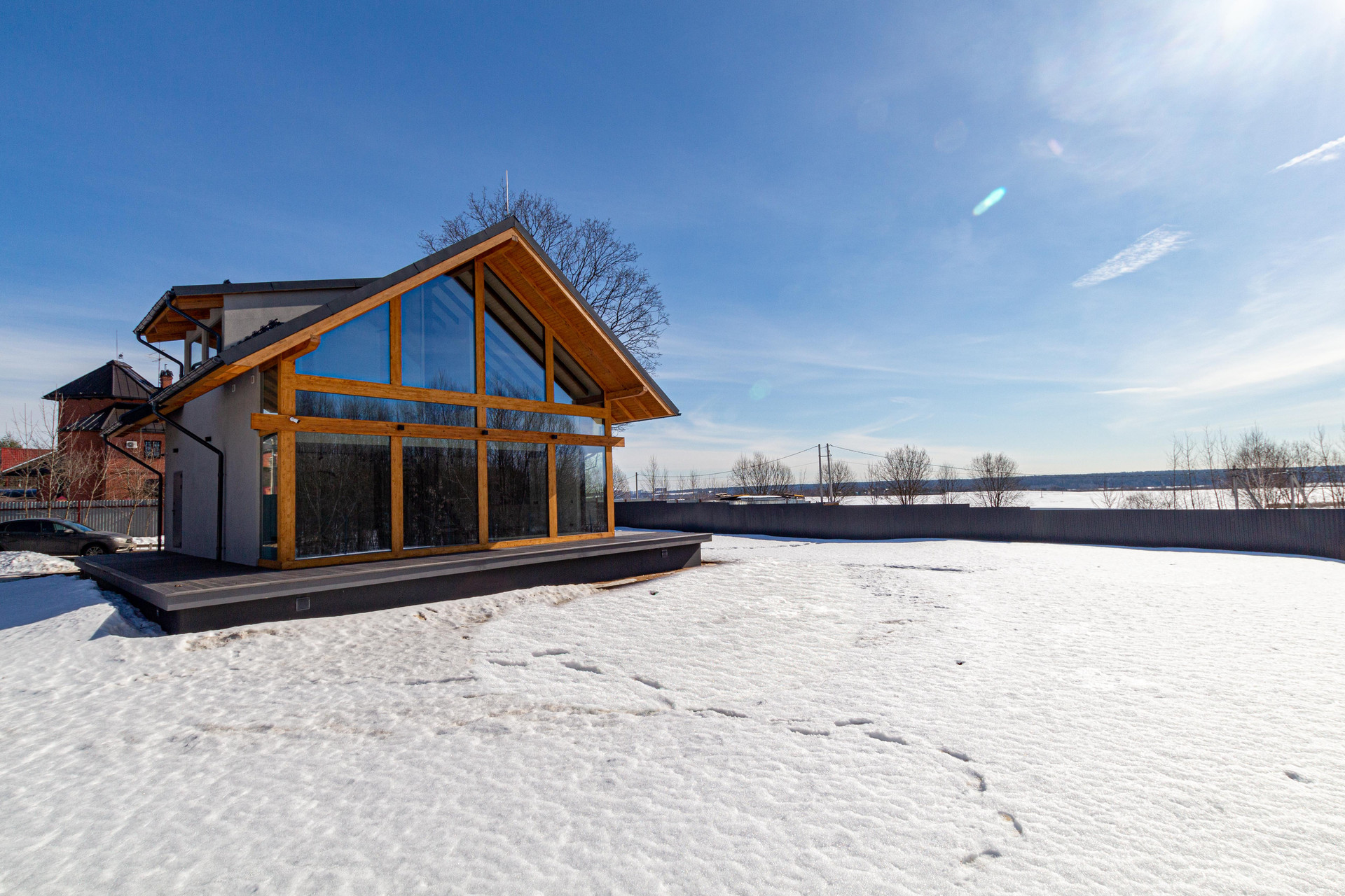 Современный, новый, энергоэффективный фахверк в 30 км от МКАД по Рублево-Успенскому шоссе. Удобный подъезд с и Новорижского шоссе. Доступ на территорию поселка через автоматические ворота. Прекрасный панорамный вид из всех комнат. Чистовая отделка качественными, экологически безопасными материалами.
