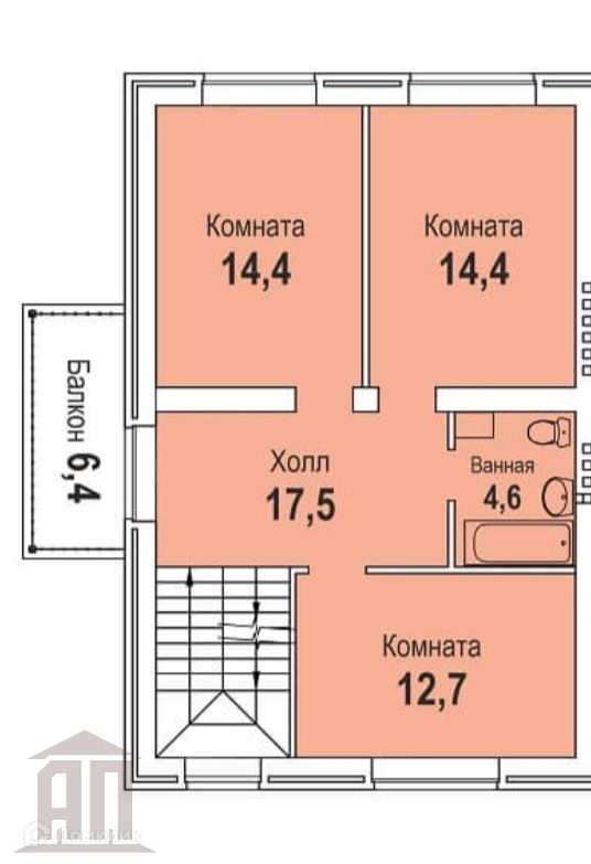 2 ЭТАЖ.-три спальни 14.4   14.4 и 12.7 кв.м.-холл 17.5 кв.м.-санузел 4.6 кв.м.-балкона                Высота потолка 2, 8 м.