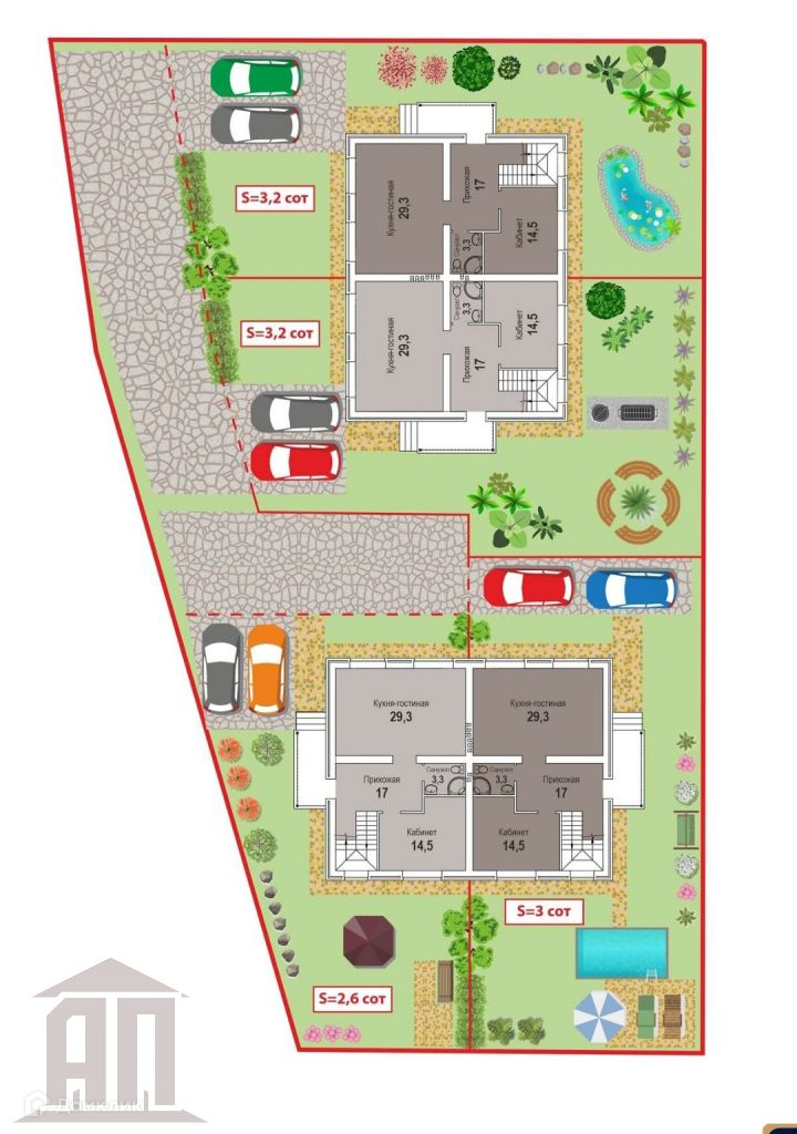 УЧАСТОК:             Площадь 3.2 соткиДва парковочных места.Забор из профлиста установлен на ленточном фундаменте.Откатные ворота.