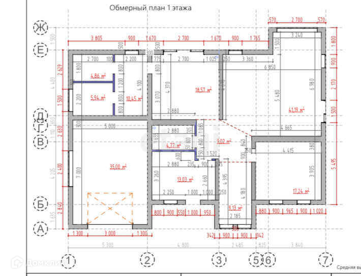 Фундамент – монолитная ж/б плита (300 мм), межэтажное перекрытие монолитное ж/б, стены – керамический кирпич.