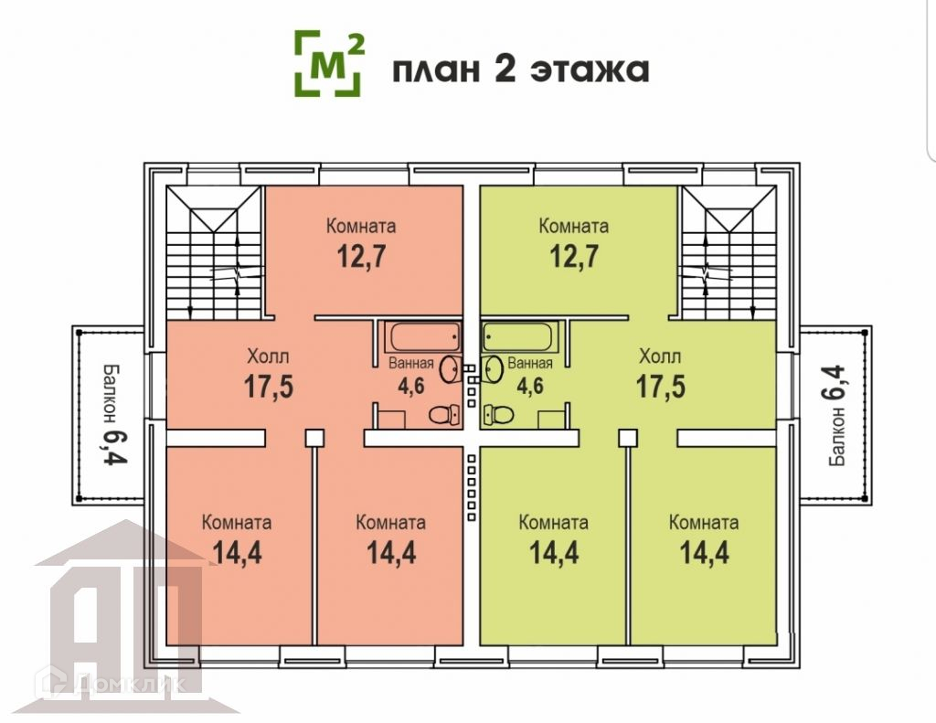 2 ЭТАЖ.-три спальни 14.4   14.4 и 12.7 кв.м.-холл 17.5 кв.м.-санузел 4.6 кв.м.-балкона                      Высота потолка 2, 8 м.