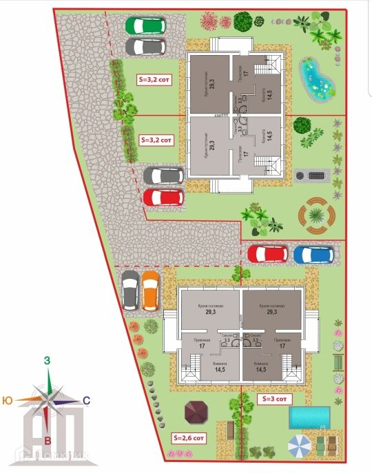 УЧАСТОК:                   Площадь 3 соткиДва парковочных места.