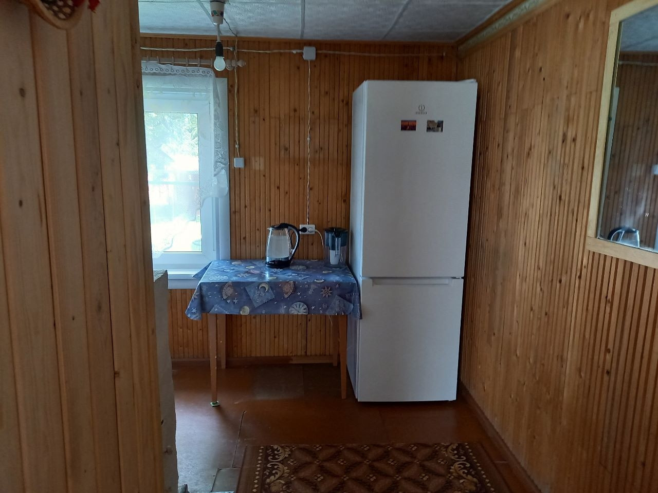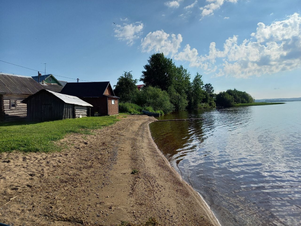 Дом очень хороший, надёжный, тёплый,есть возможность проживать в зимний период.  Внутри обшит вагонкой,стеклопакеты ,прекрасный вид из окон на озеро, есть балкон. На участке есть сарай дровеник, большой запас дров , туалет.  Земля плодородная,разработана под посадки. Два колодца , один новый с питьевой водой. Гараж металлический.
