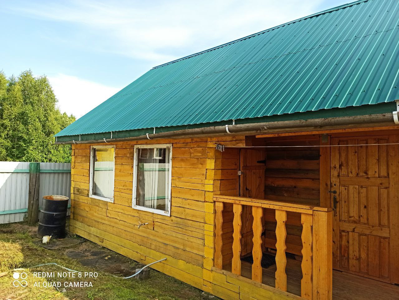 Свежая баня, забор.