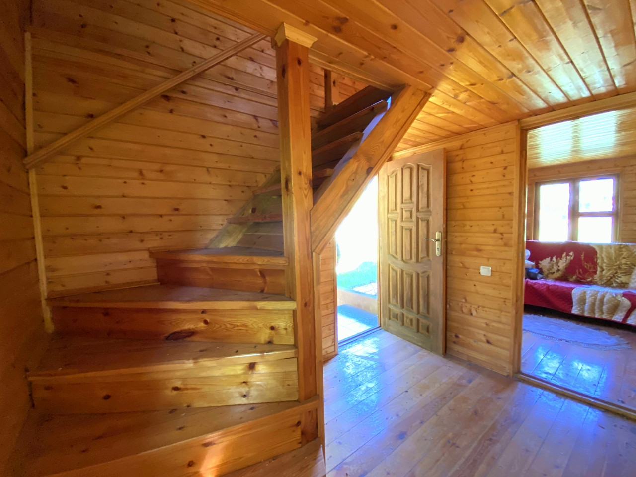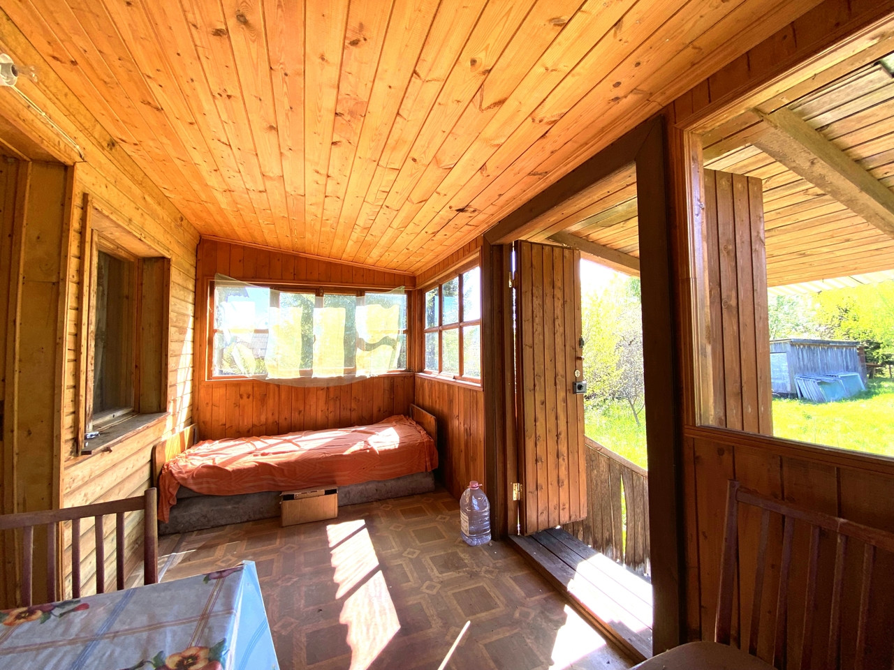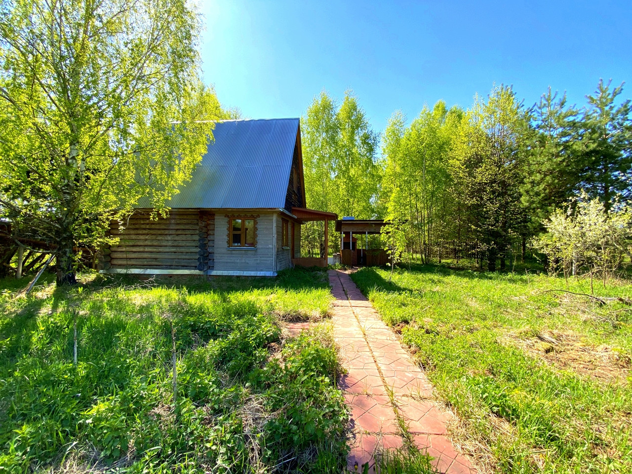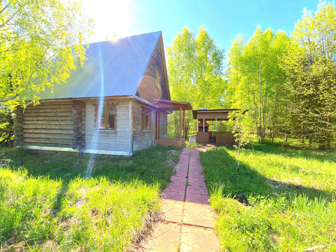 Также на участке построили дом с баней из бревна, второй этаж каркасный утеплён. Подходит для зимнего проживания, печь новая, парная, душевая, две изолированные комнаты. Рядом беседка с зоной барбекю.