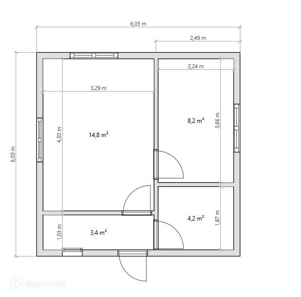 Общая площадь дома 54 метра.
