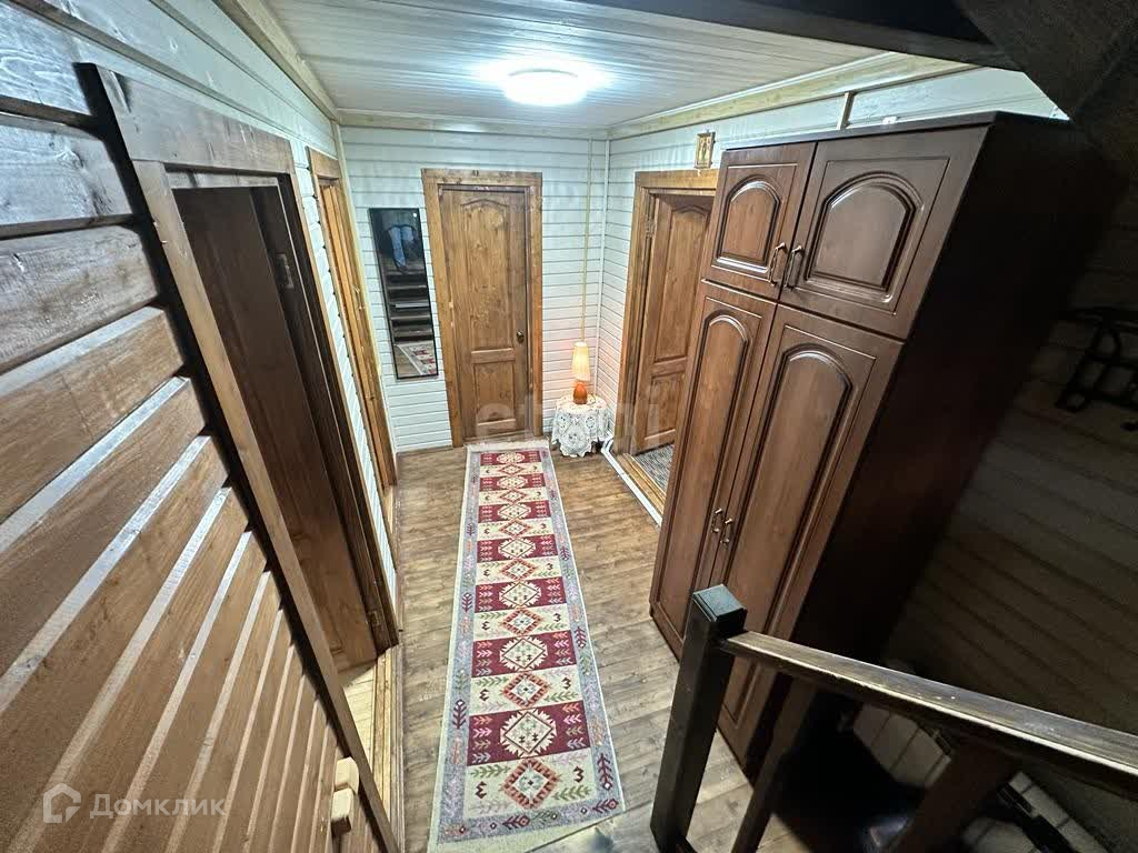 Фундамент ленточный, стены из клееного бруса 180 мм, утеплен, снаружи обшит деревом. В доме два полноценных этажа. Электричество 15 кВт, канализация - переливной септик, для водоснабжения колодец на 8 колец с системой очистки, отопление ГАЗОВОЕ (котел).