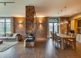 Арт. 28316527 КЕШБЭК ПОКУПАТЕЛЮ!!!Современный кирпичный дом 400 кв. м. в охраняемом коттеджном поселке премиум класса «Рублевские горки». Стены монолитно-кирпичные, перекрытия монолитные, кровля мягкая. Фасад оштукатурен и отделан натуральным деревом. В просторной гостиной со вторым светом установлен камин Spartherm. Удобная кухня-столовая, укомплектован... |