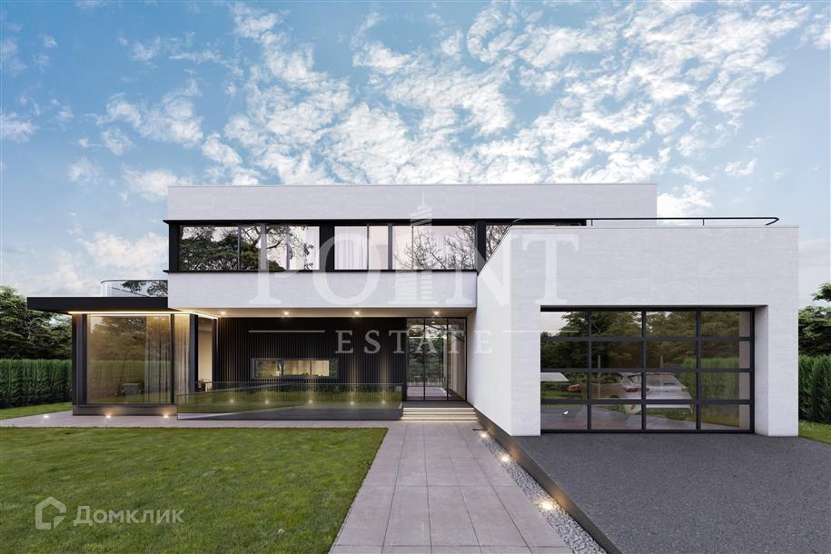 Лот: 97026.   Двухэтажный загородный дом в современном стиле площадью 554 кв.м без отделки располагается на участке правильной формы 13,51 сотки в охраняемом коттеджном поселке "Папушево Парк". Планировкой предусмотрено размещение на первом этаже гостиной, кухни-столовой, спальни с санузлом, котельной, постирочной, санузла, кладовой, прихожей, гаража для двух автомобилей, террасы. Второй этаж займут четыре спальни с индивидуальными гардеробными и санузлами, терраса. В минутной доступности есть всё, что может потребоваться современному человеку. Жители могут пользоваться услугами объектов развлекательной и социально-бытовой сферы соседних элитных посёлков и богатейшей инфраструктурой Рублёво-Успенского направления.